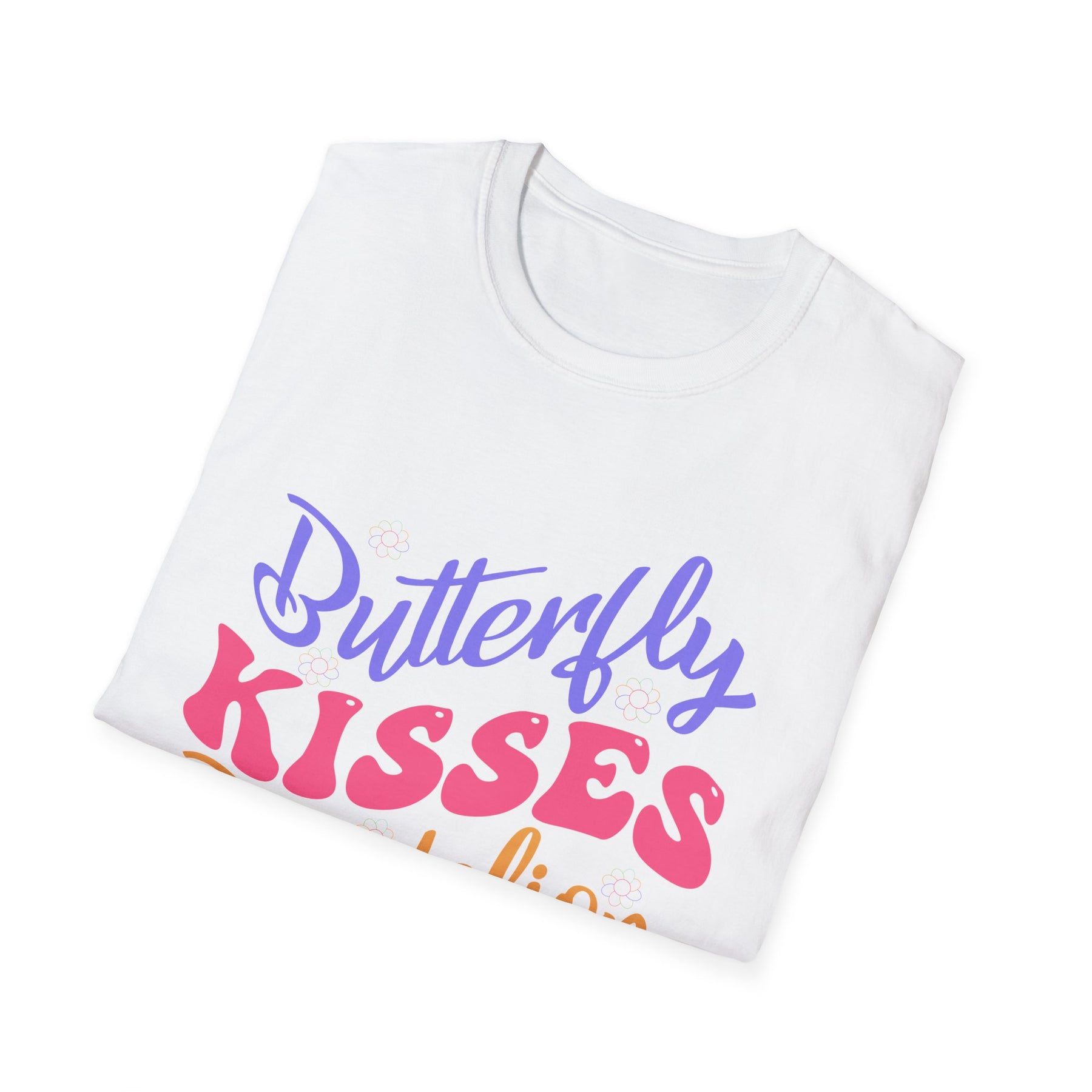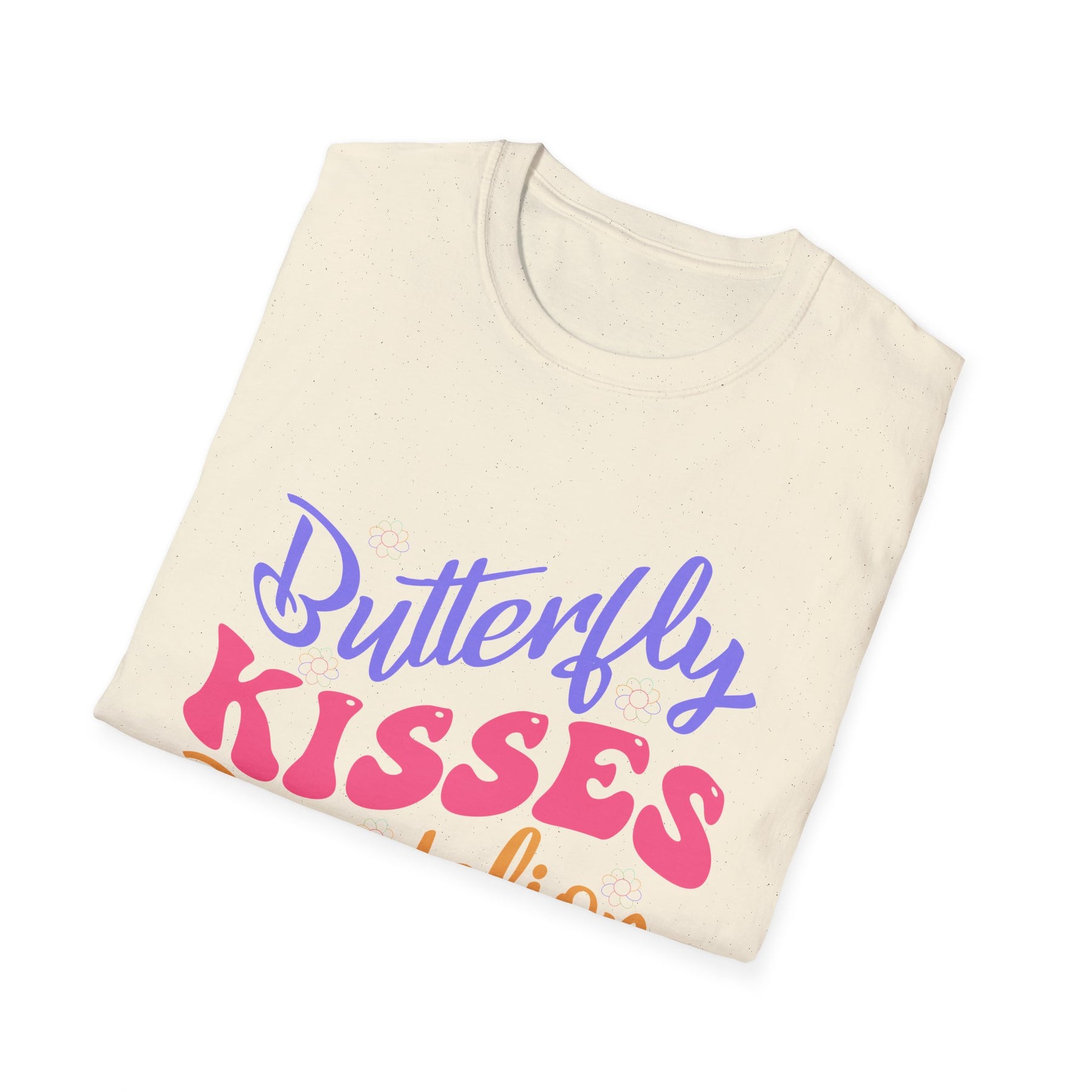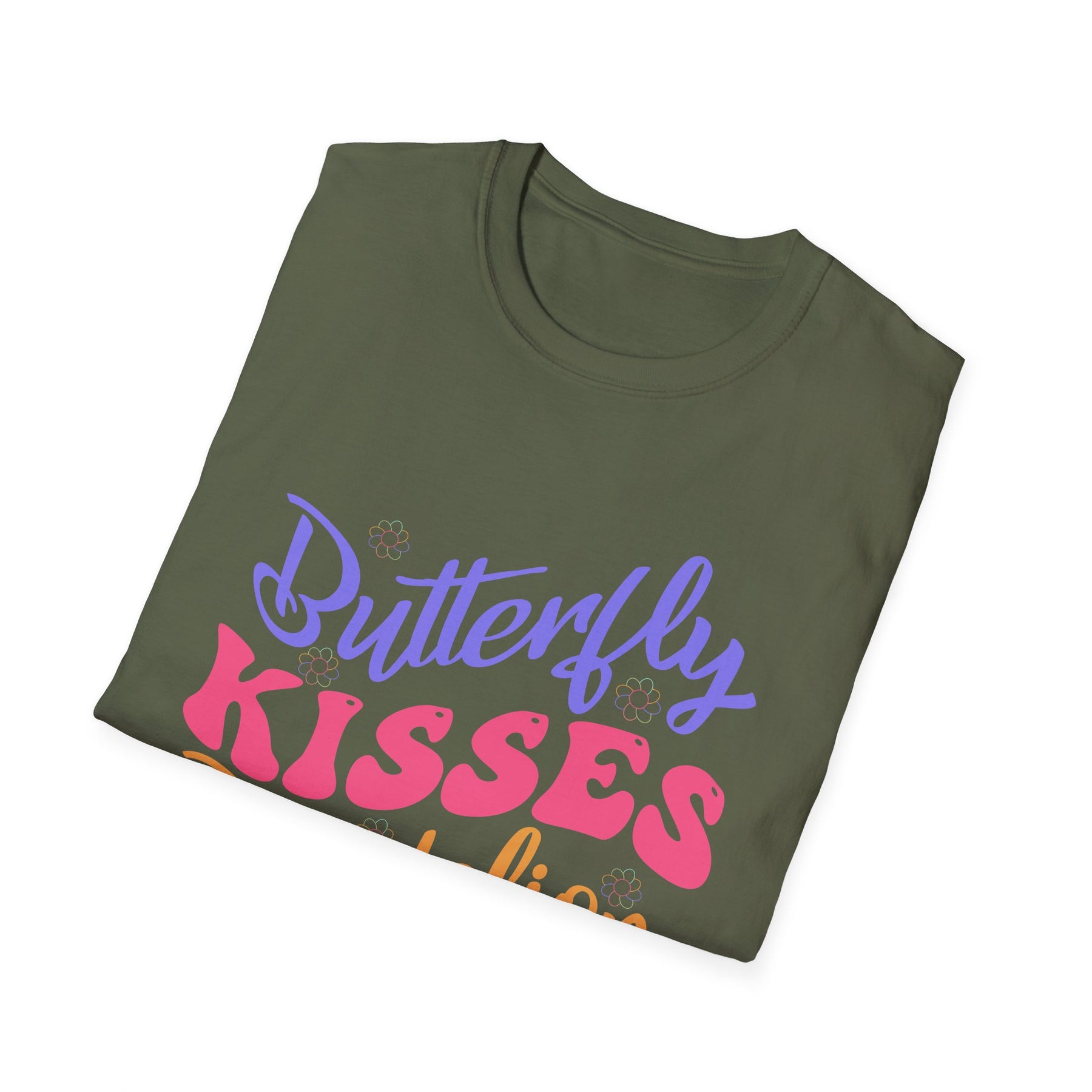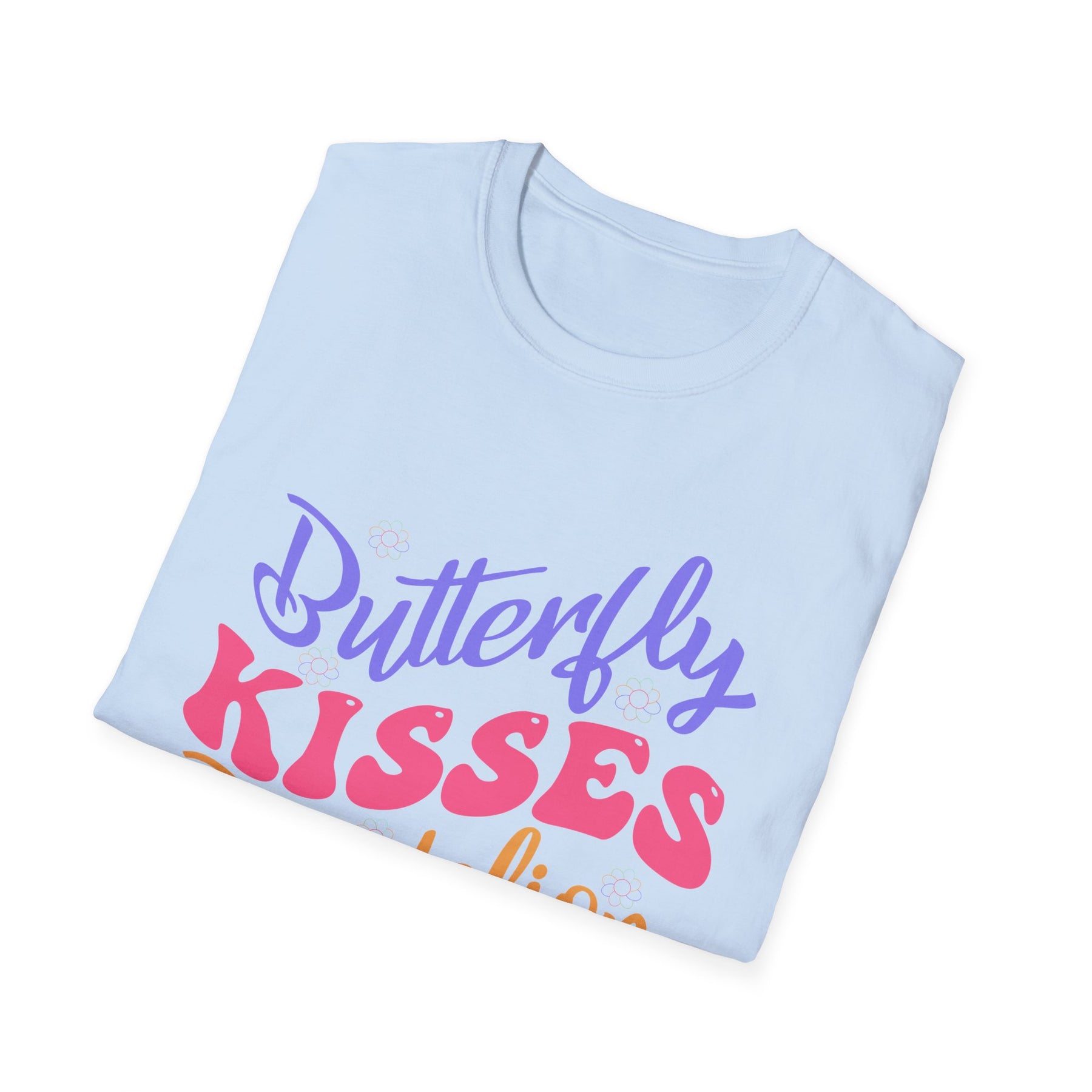 Light, soft, and cheerful — this tee carries a gentle, nostalgic voice. The pastel hand-lettered design reads “Butterfly Kisses, Dandelion Wishes,” evoking warm afternoons chasing blooms and blowing seeds into the summer breeze. The lightweight ring-spun cotton feels air-light on the skin, while the classic crew neck and clean, tubular knit keep the silhouette simple and effortless. Wear it on slow weekend mornings, at casual meetups, or layered under a cardigan when the evening cools down. The tear-away label and reinforced shoulder tape mean it stays comfortable through many washes, and the vivid DTF/DTG print keeps the artwork bright and soft to the touch. Subtle details — like natural flecks in the unprocessed colorways and ethically sourced cotton — add honest texture and quiet character to each shirt.