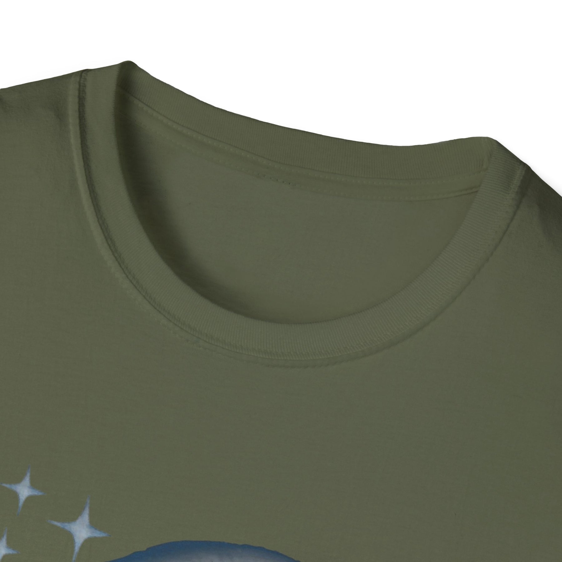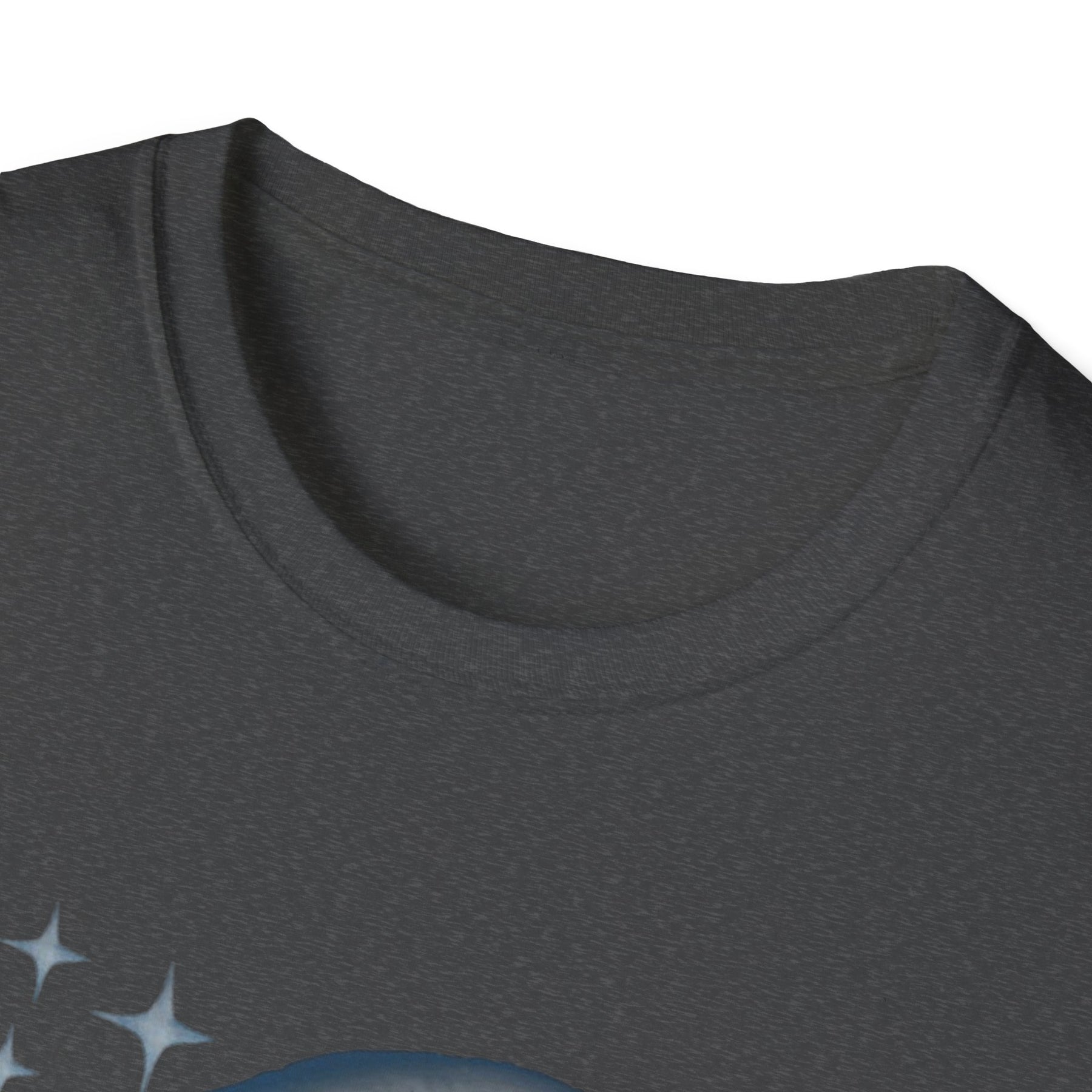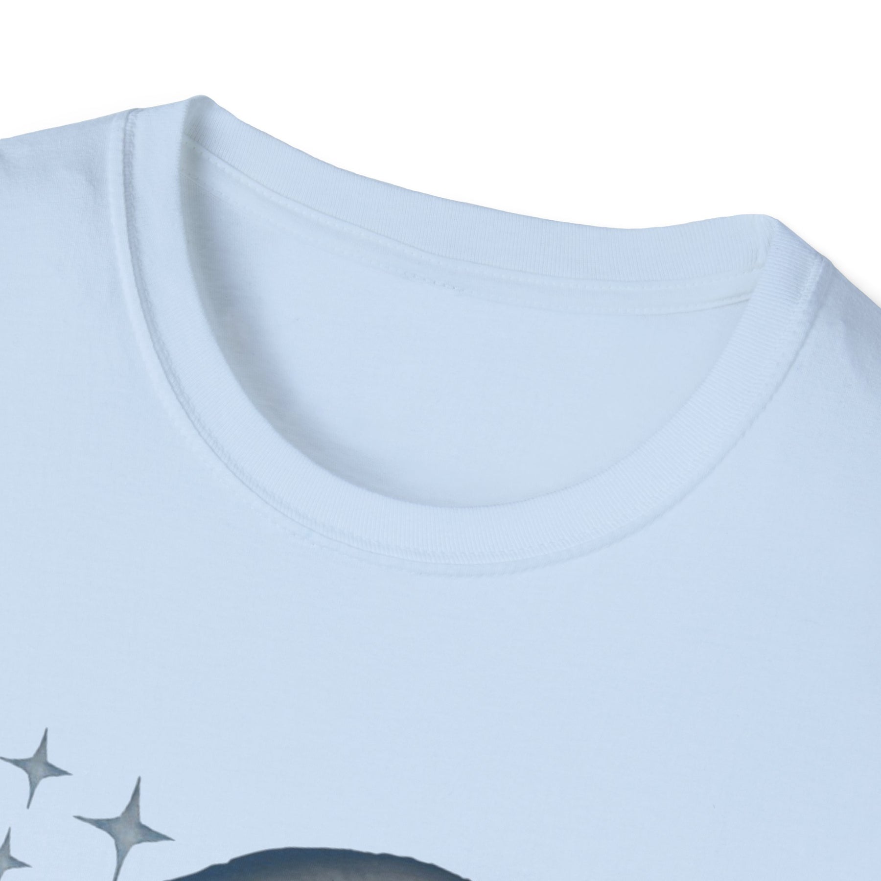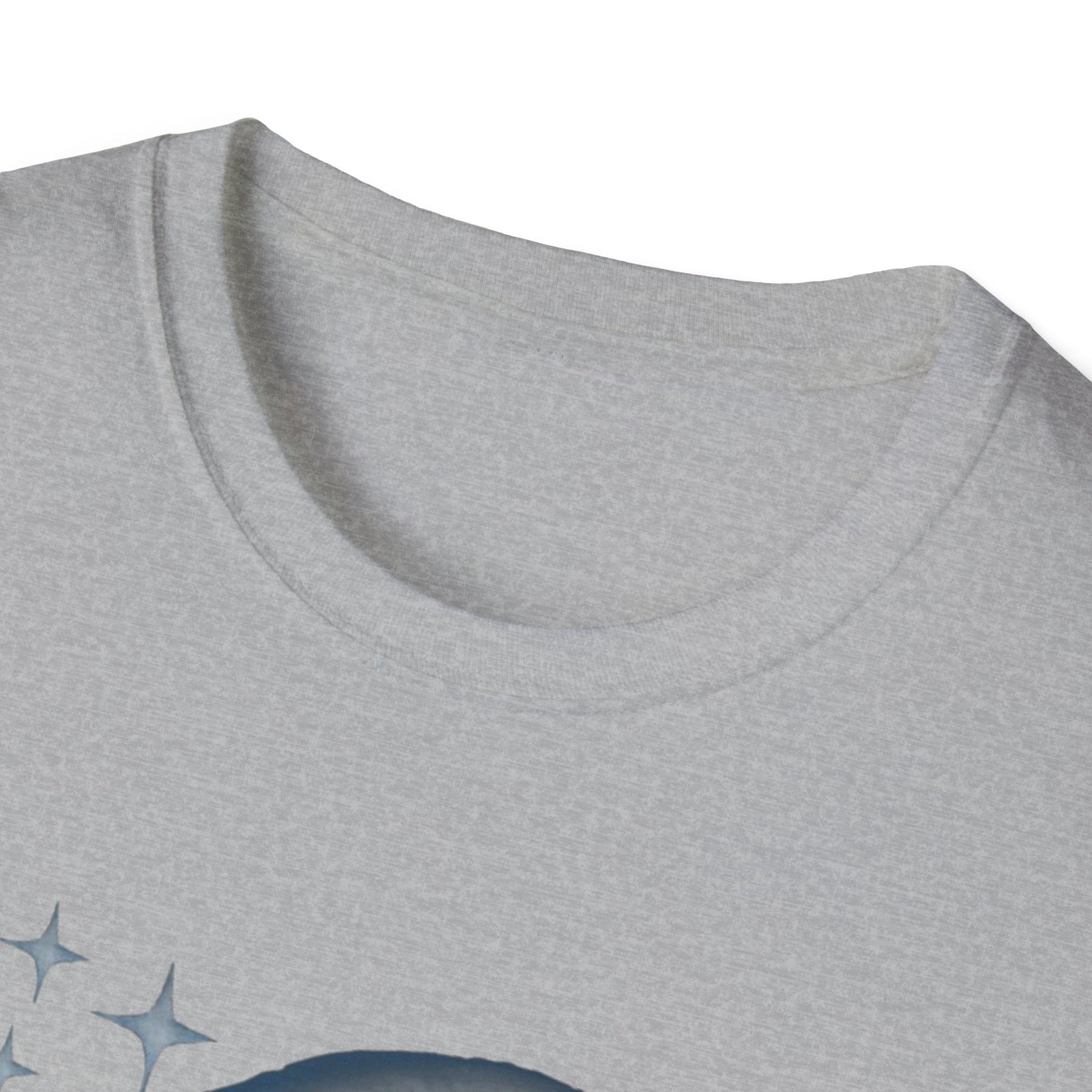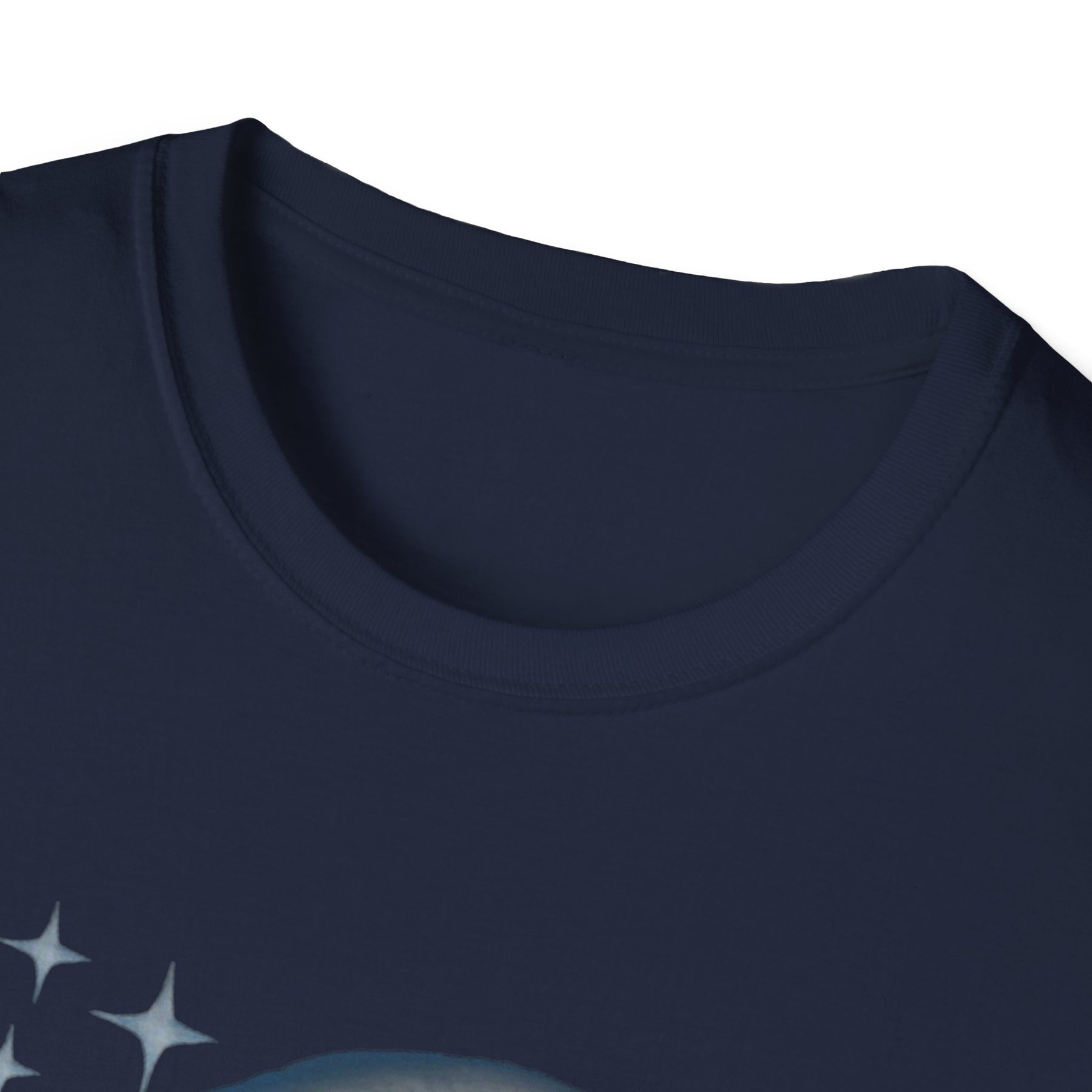 A lightweight cotton tee that feels like a quiet evening under the stars. Soft, slightly slubbed fabric carries a hand-painted crescent moon and scattered stars in muted indigo and silver tones. Wear it tucked into high-waist jeans or layered under an open cardigan for slow walks, tea at dusk, or cozy nights reading by a lamp. The relaxed crew neck and classic fit let the art breathe on the front while keeping the silhouette simple and easy to move in. A subtle, calm piece for those who collect small moments and quiet rituals.