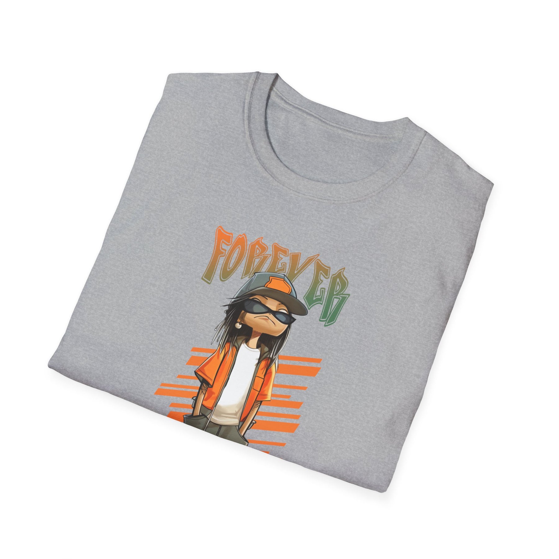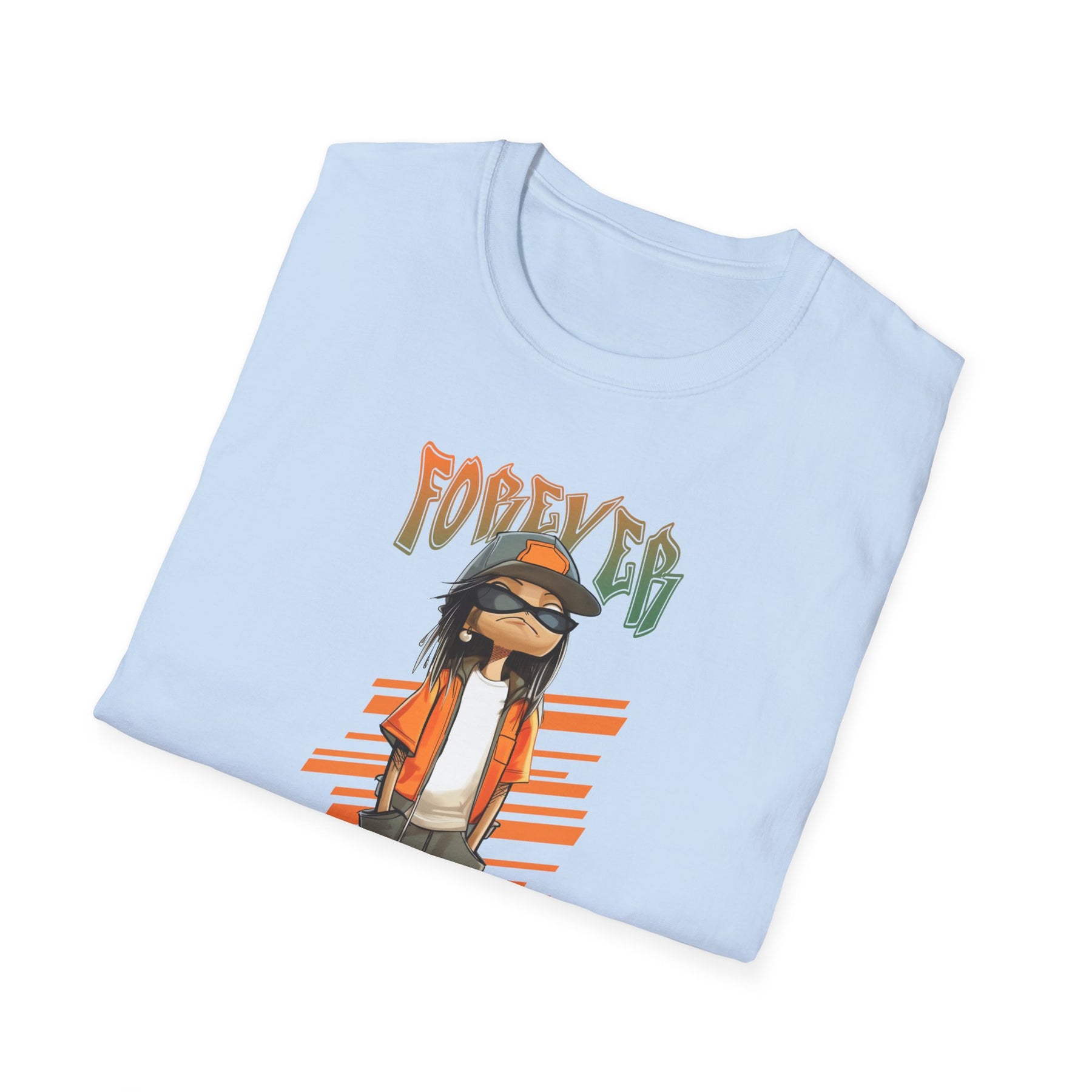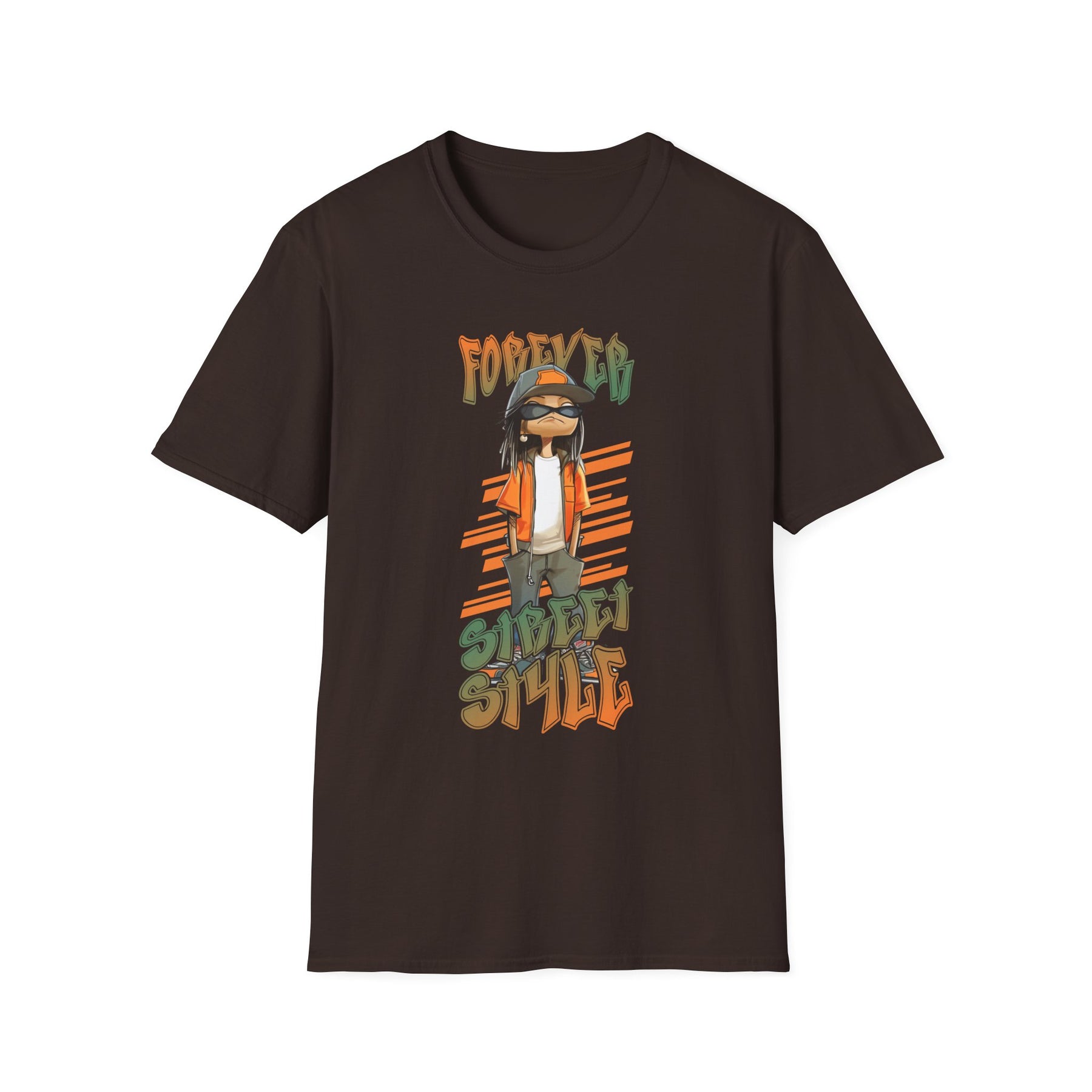 This lightweight, ring-spun cotton tee carries a relaxed, streetwise energy — a soft canvas for the illustrated, retro-inspired graphic. The artwork blends warm, faded tones and bold line work to create a laid-back, slightly vintage vibe that sits casually on the chest. Wear it when you want an easygoing, lived-in look that still reads intentional: layered under a jacket for cooler nights, paired with worn denim, or thrown on for weekend walks and late-afternoon coffee runs. Breathable and smooth against the skin, the shirt keeps its shape while letting the print remain the focal point of a simple, confident outfit.