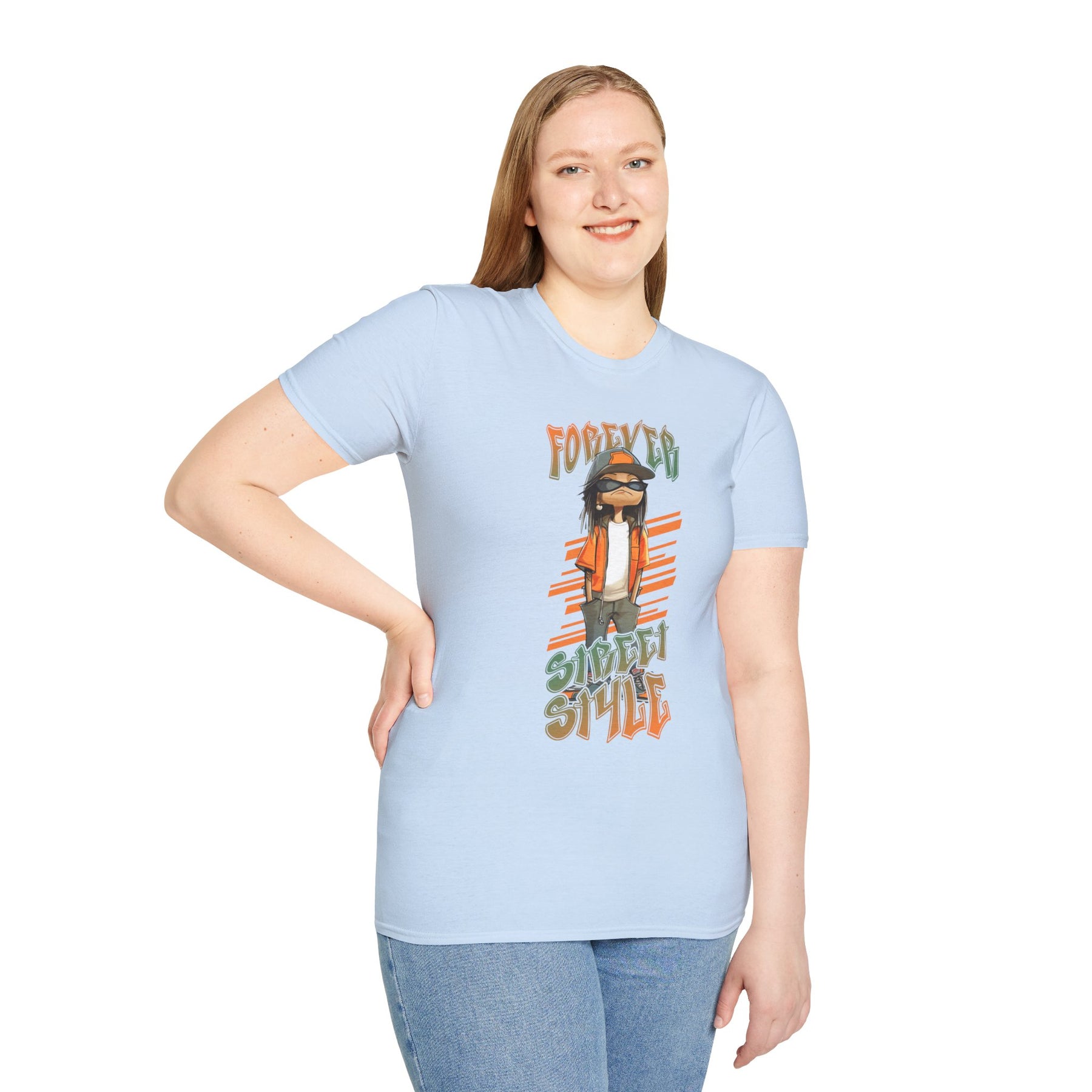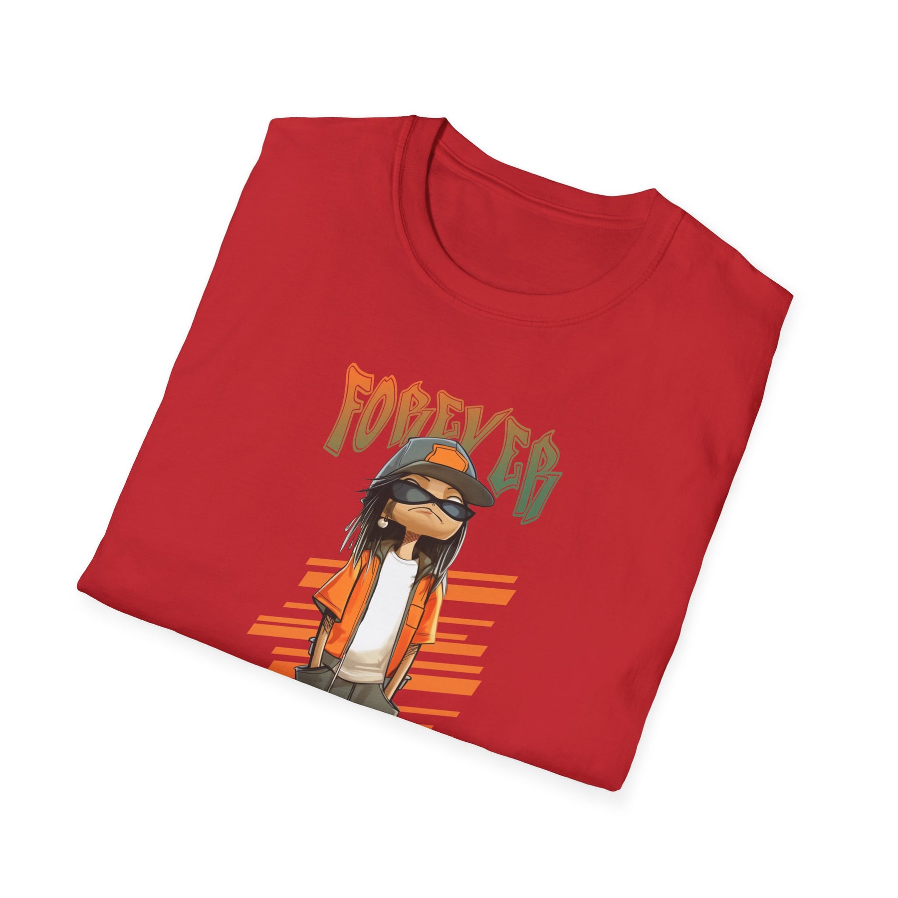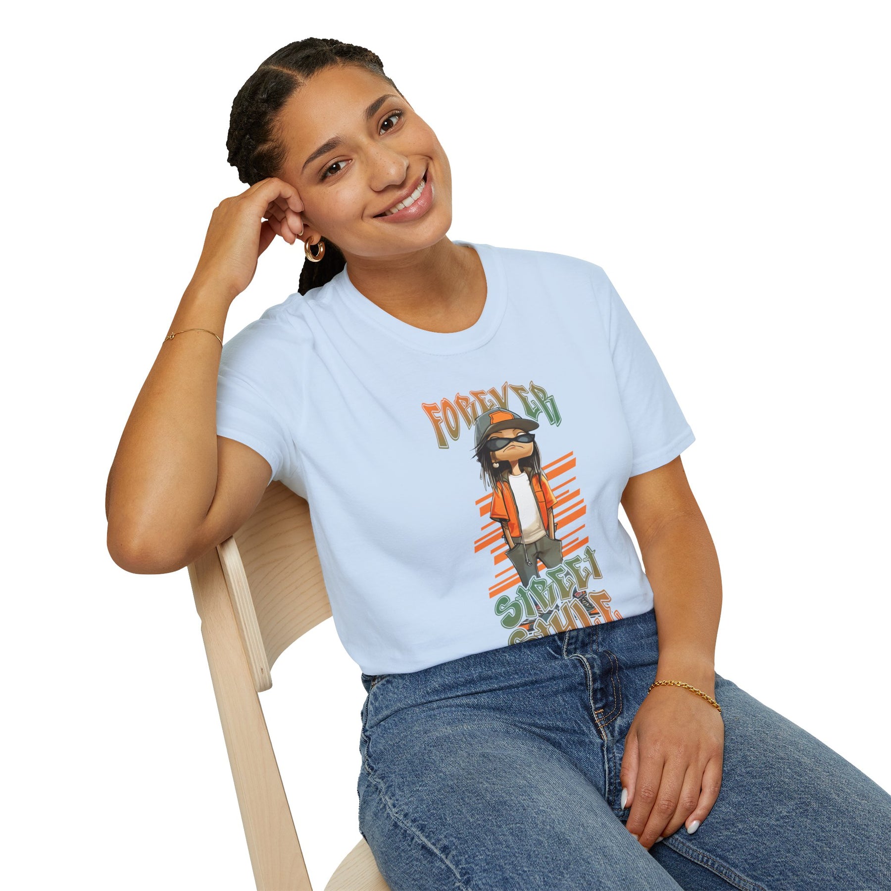 This lightweight, ring-spun cotton tee carries a relaxed, streetwise energy — a soft canvas for the illustrated, retro-inspired graphic. The artwork blends warm, faded tones and bold line work to create a laid-back, slightly vintage vibe that sits casually on the chest. Wear it when you want an easygoing, lived-in look that still reads intentional: layered under a jacket for cooler nights, paired with worn denim, or thrown on for weekend walks and late-afternoon coffee runs. Breathable and smooth against the skin, the shirt keeps its shape while letting the print remain the focal point of a simple, confident outfit.
