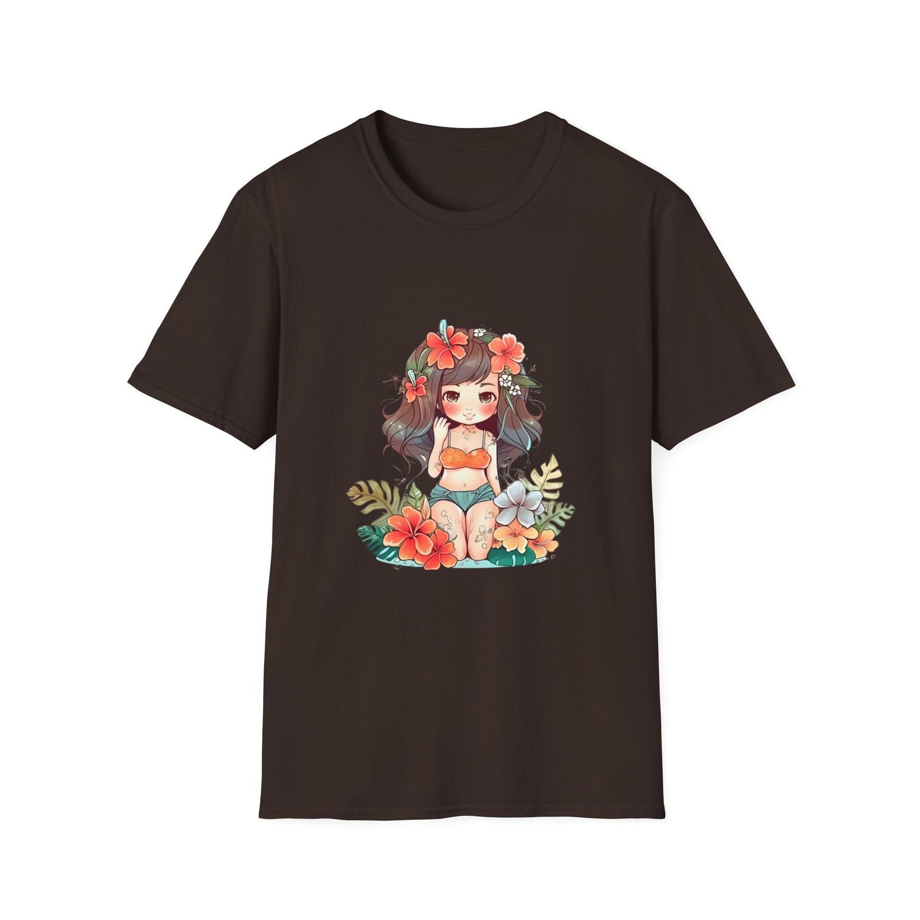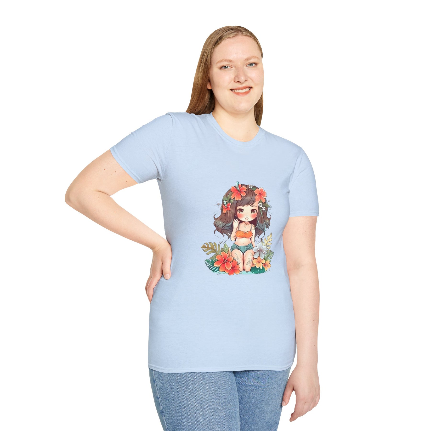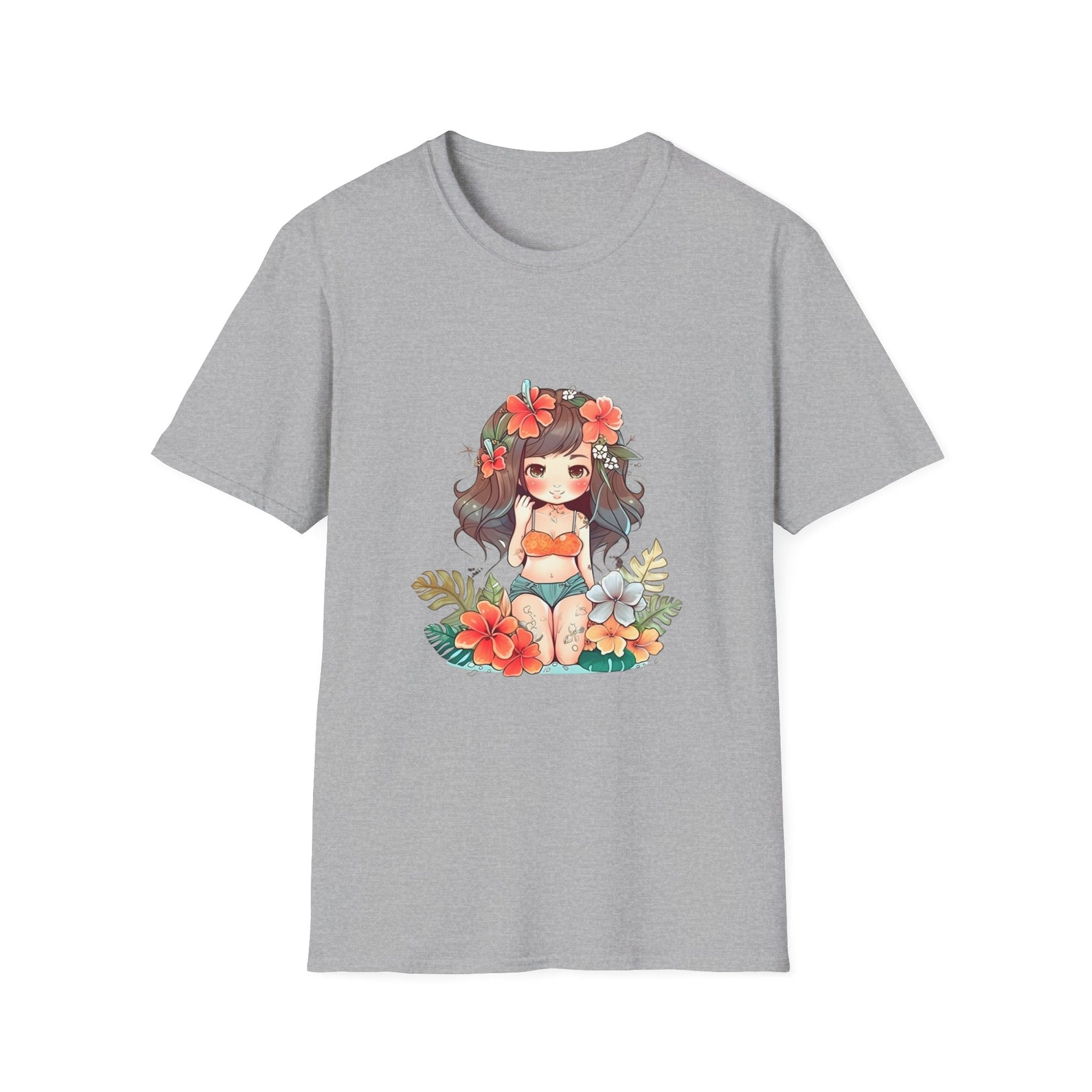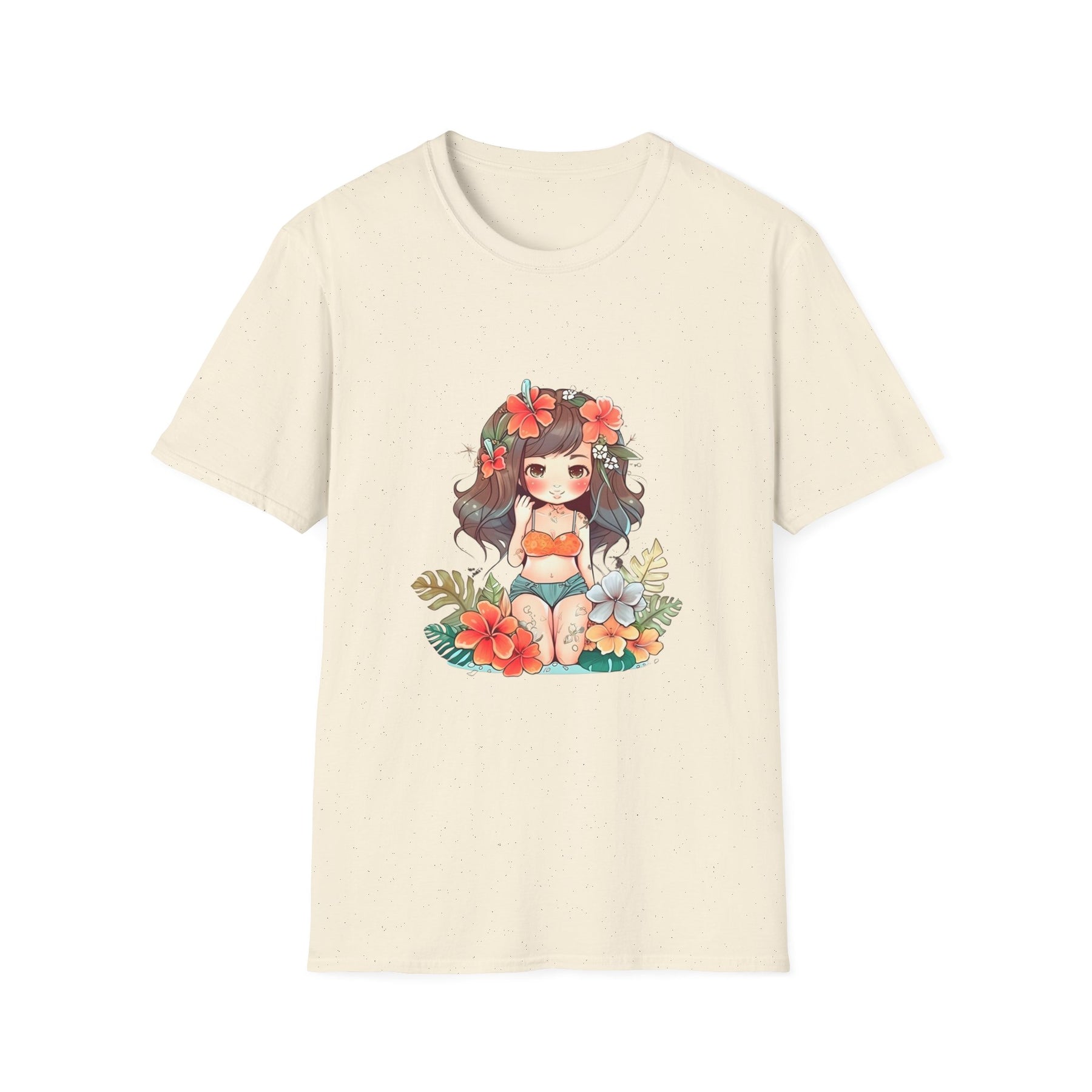 Bright, beachy, and unpretentiously playful — this chibi Hula Girl tee brings a little Hawaiian sunshine into everyday life. Soft, breathable cotton rests against skin like a warm sea breeze while a cheerful, floral-swathed hula girl sketch leans into surf culture with a wink. Wear it for slow mornings at the boardwalk, impromptu luaus with friends, or when you need a reminder of salt air and sand between tides. The silhouette sits comfortably at the chest and shoulders, leaving room to move—great for layering under an open shirt or tossing on after a surf. It’s for people who collect small, sunny moments: early-morning coffee on a porch, barefoot walks with a cooler on your shoulder, or a backyard evening that smells faintly of coconut and hibiscus.