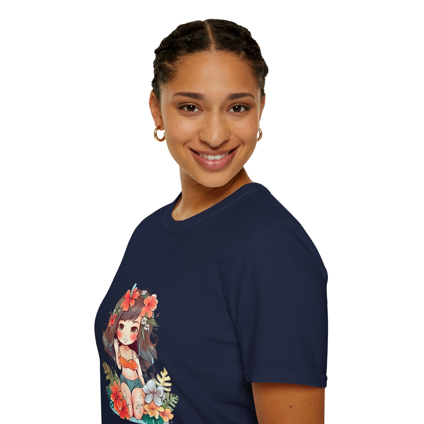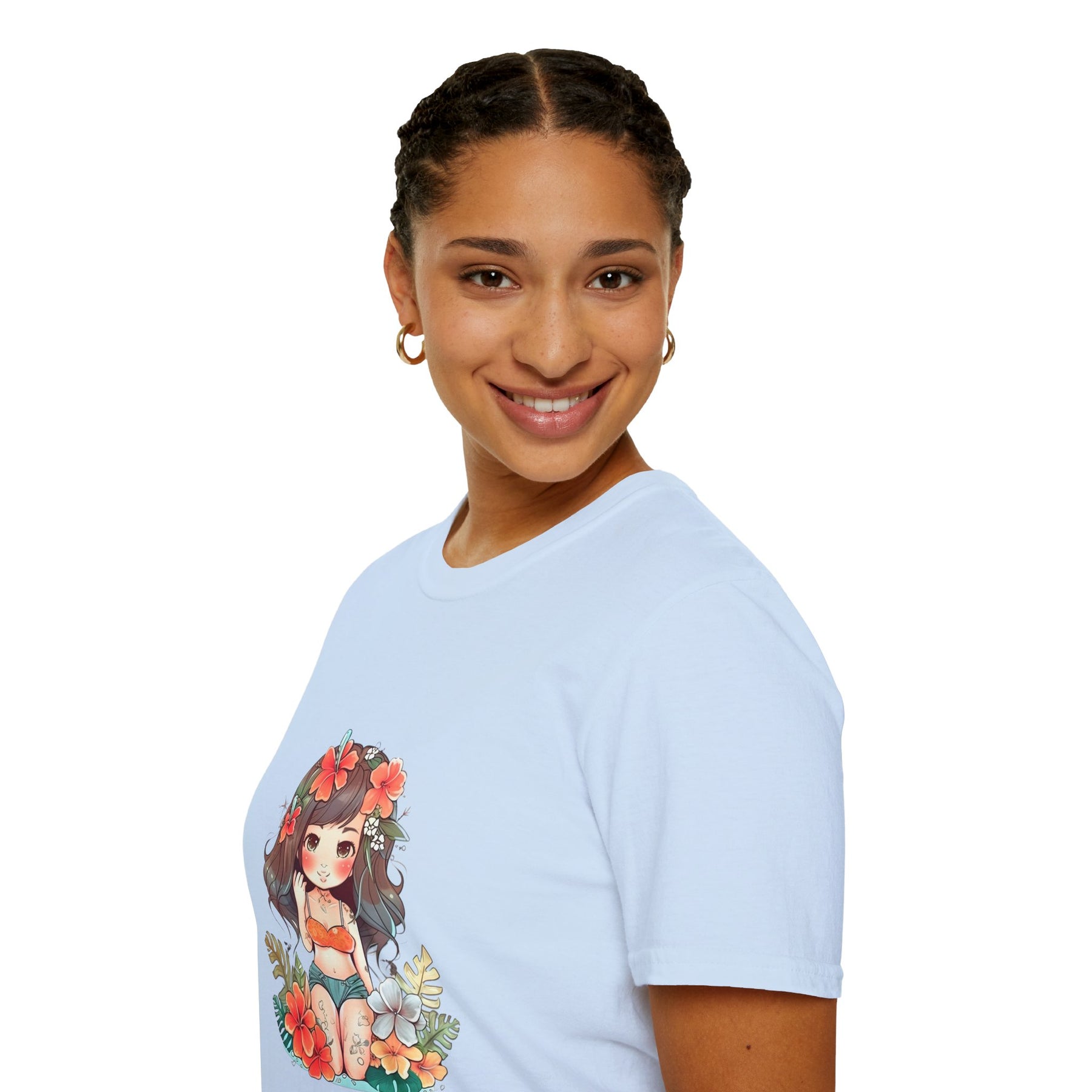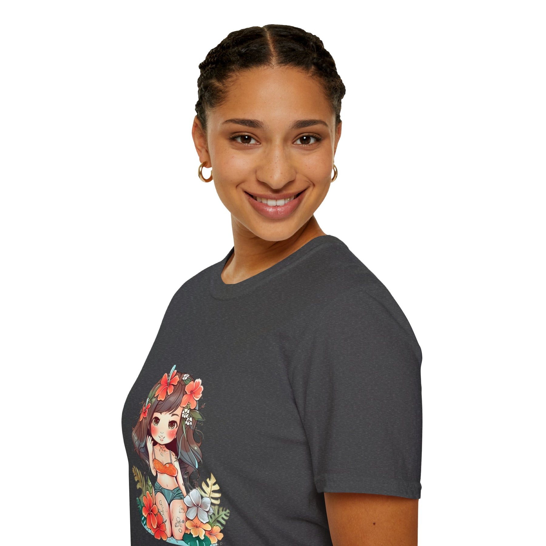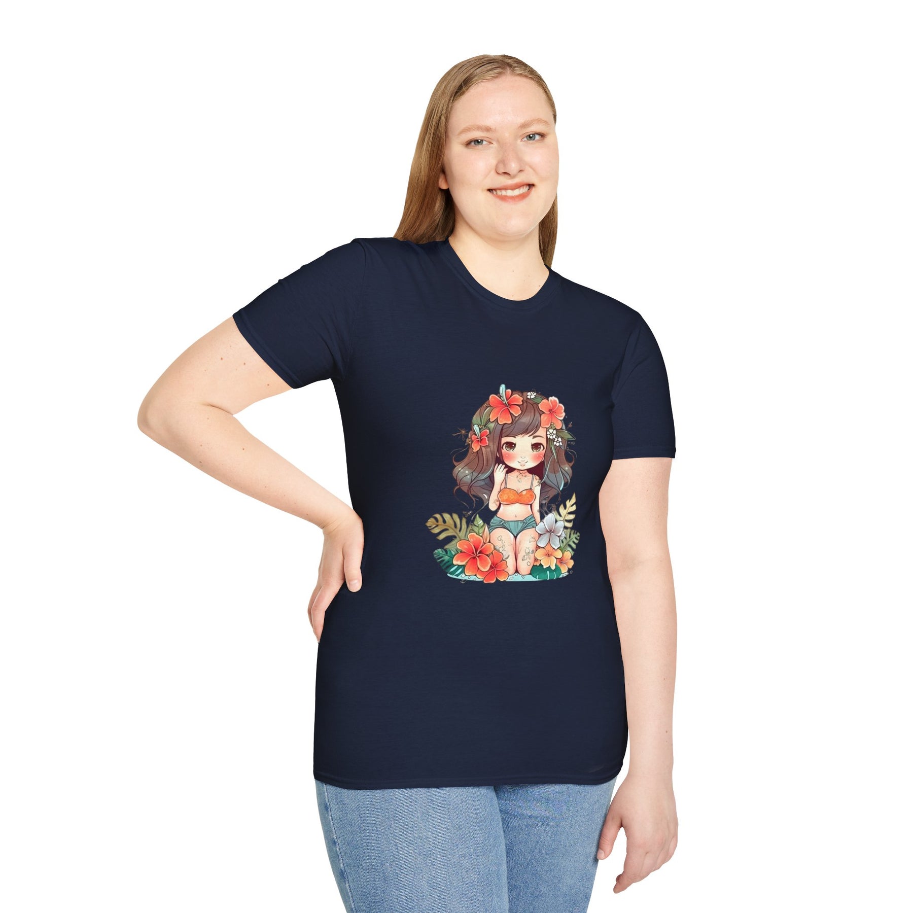 Bright, beachy, and unpretentiously playful — this chibi Hula Girl tee brings a little Hawaiian sunshine into everyday life. Soft, breathable cotton rests against skin like a warm sea breeze while a cheerful, floral-swathed hula girl sketch leans into surf culture with a wink. Wear it for slow mornings at the boardwalk, impromptu luaus with friends, or when you need a reminder of salt air and sand between tides. The silhouette sits comfortably at the chest and shoulders, leaving room to move—great for layering under an open shirt or tossing on after a surf. It’s for people who collect small, sunny moments: early-morning coffee on a porch, barefoot walks with a cooler on your shoulder, or a backyard evening that smells faintly of coconut and hibiscus.
