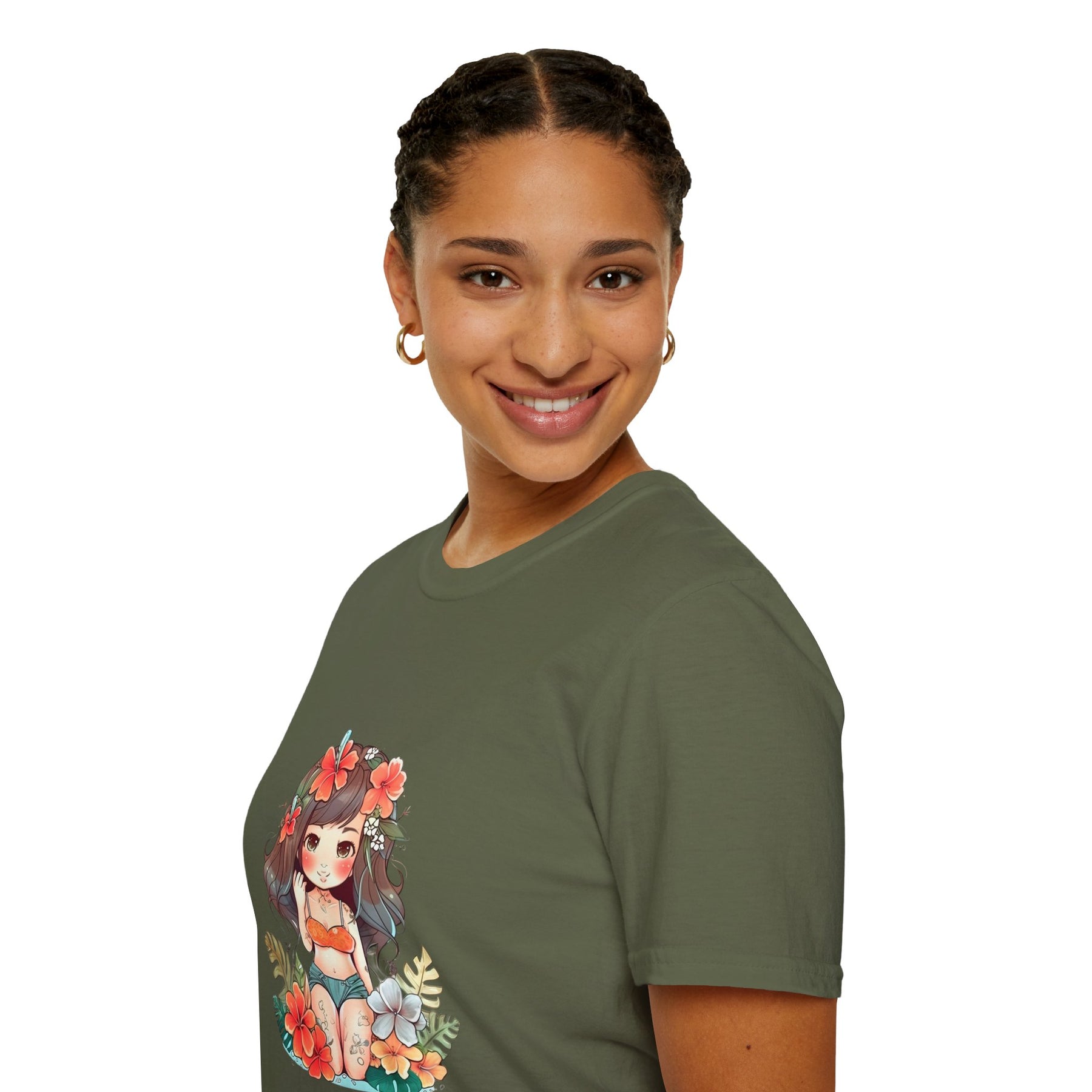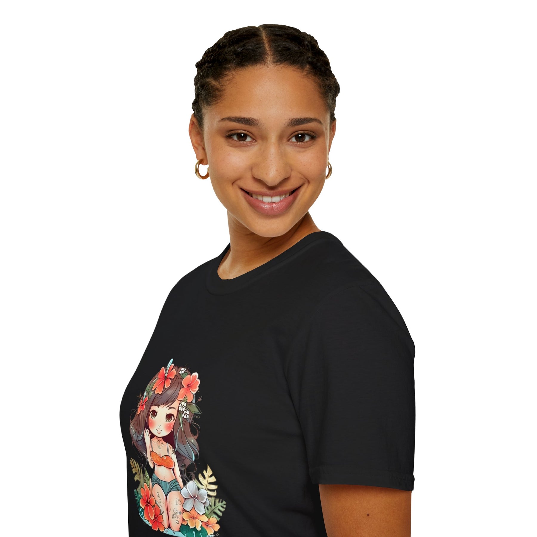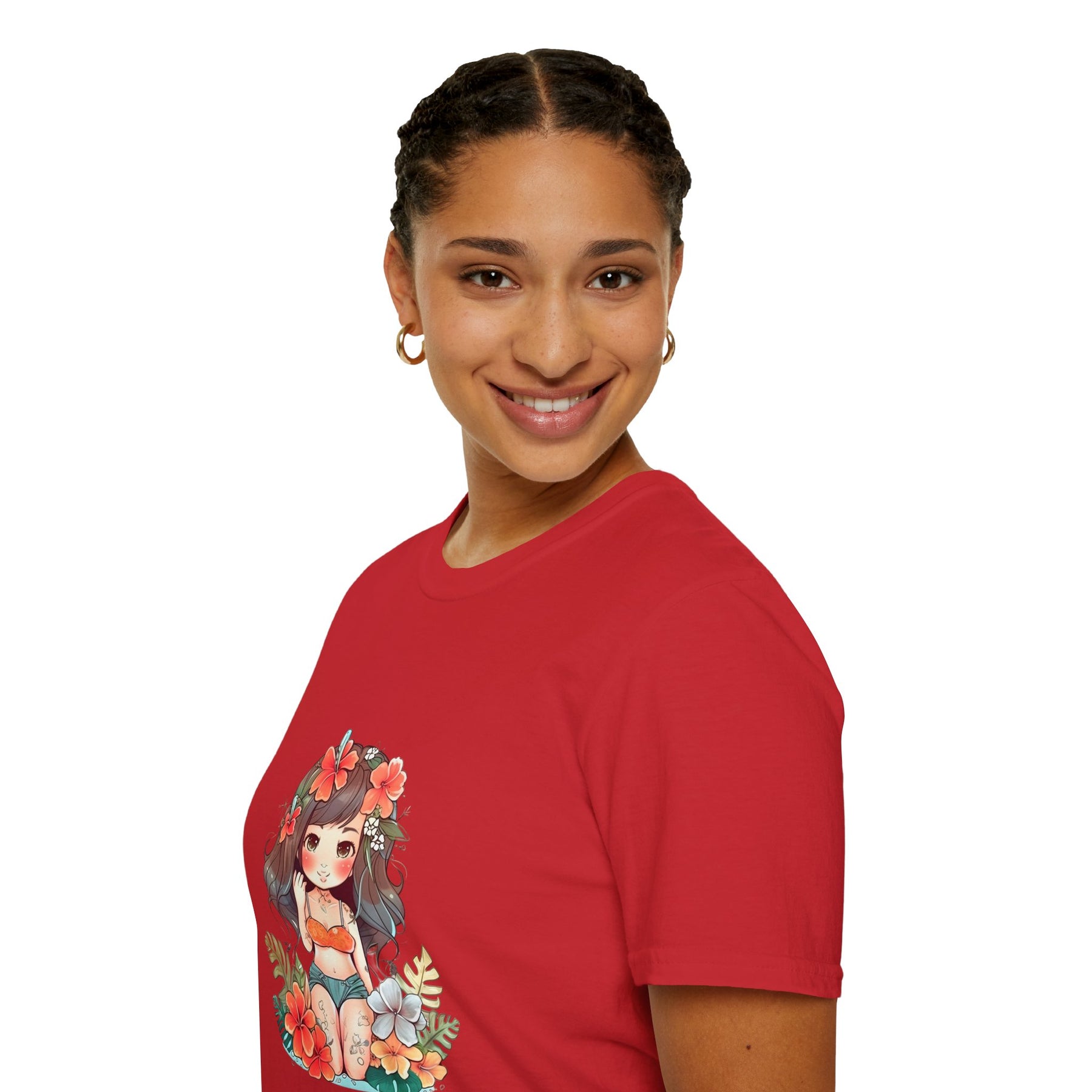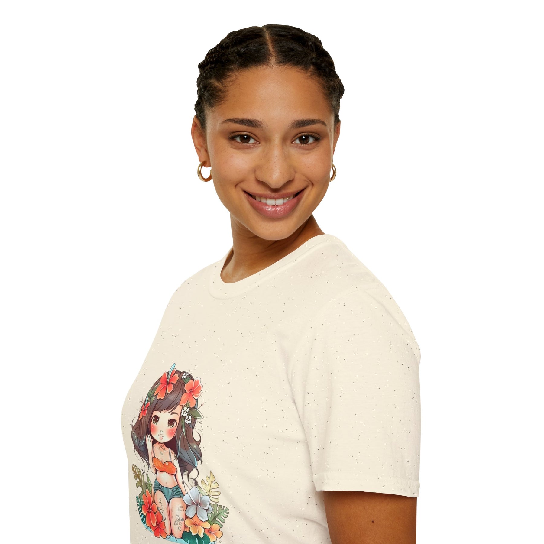 Bright, beachy, and unpretentiously playful — this chibi Hula Girl tee brings a little Hawaiian sunshine into everyday life. Soft, breathable cotton rests against skin like a warm sea breeze while a cheerful, floral-swathed hula girl sketch leans into surf culture with a wink. Wear it for slow mornings at the boardwalk, impromptu luaus with friends, or when you need a reminder of salt air and sand between tides. The silhouette sits comfortably at the chest and shoulders, leaving room to move—great for layering under an open shirt or tossing on after a surf. It’s for people who collect small, sunny moments: early-morning coffee on a porch, barefoot walks with a cooler on your shoulder, or a backyard evening that smells faintly of coconut and hibiscus.