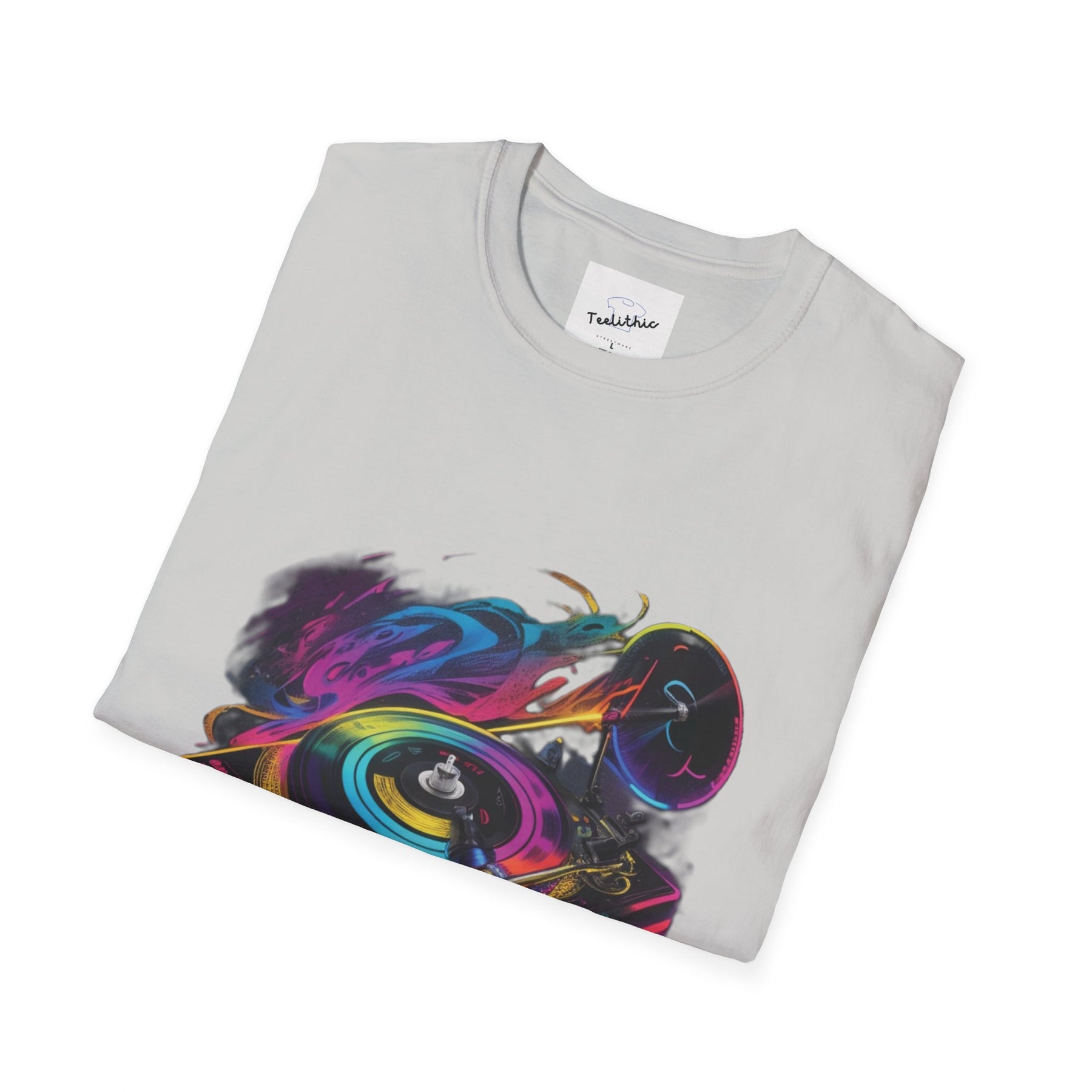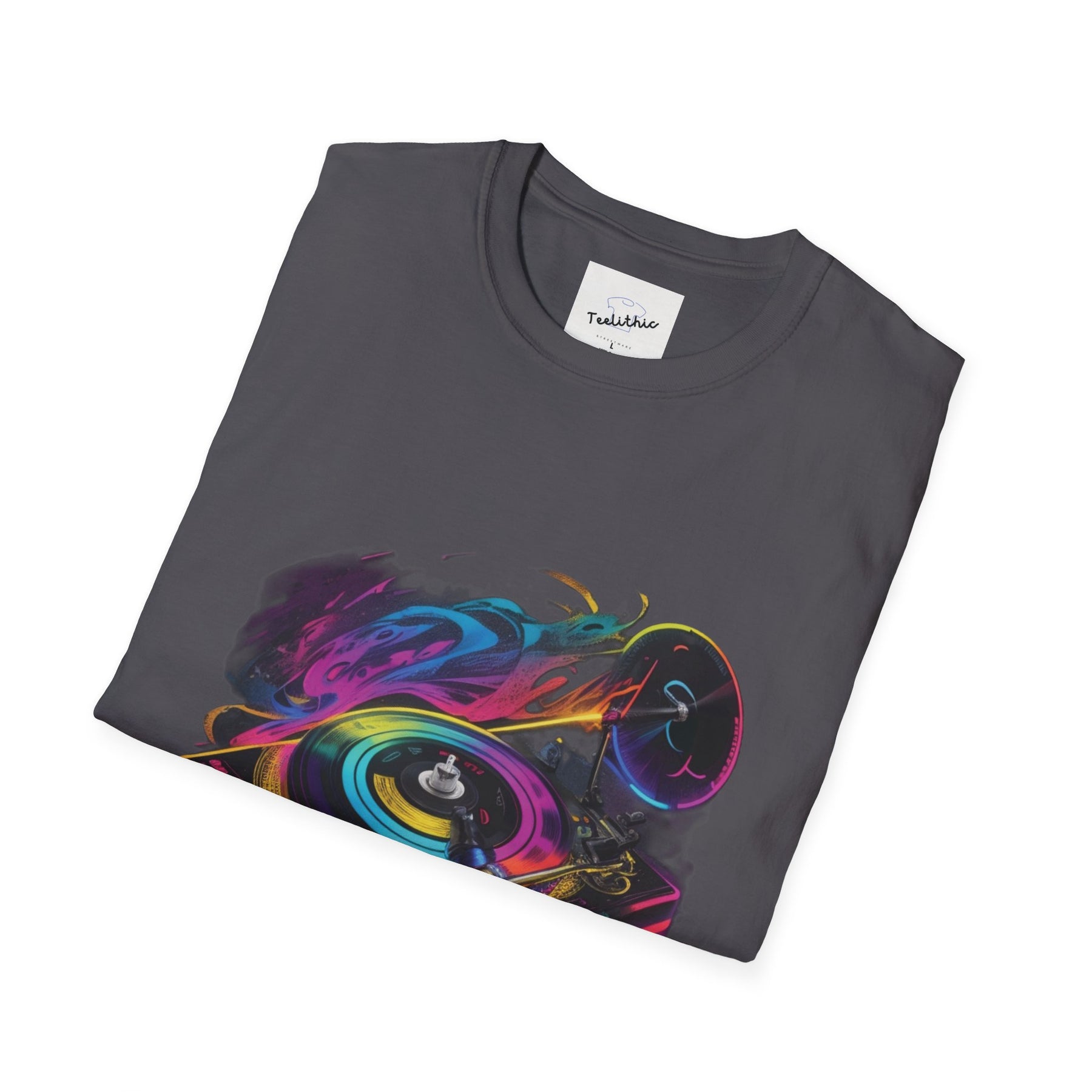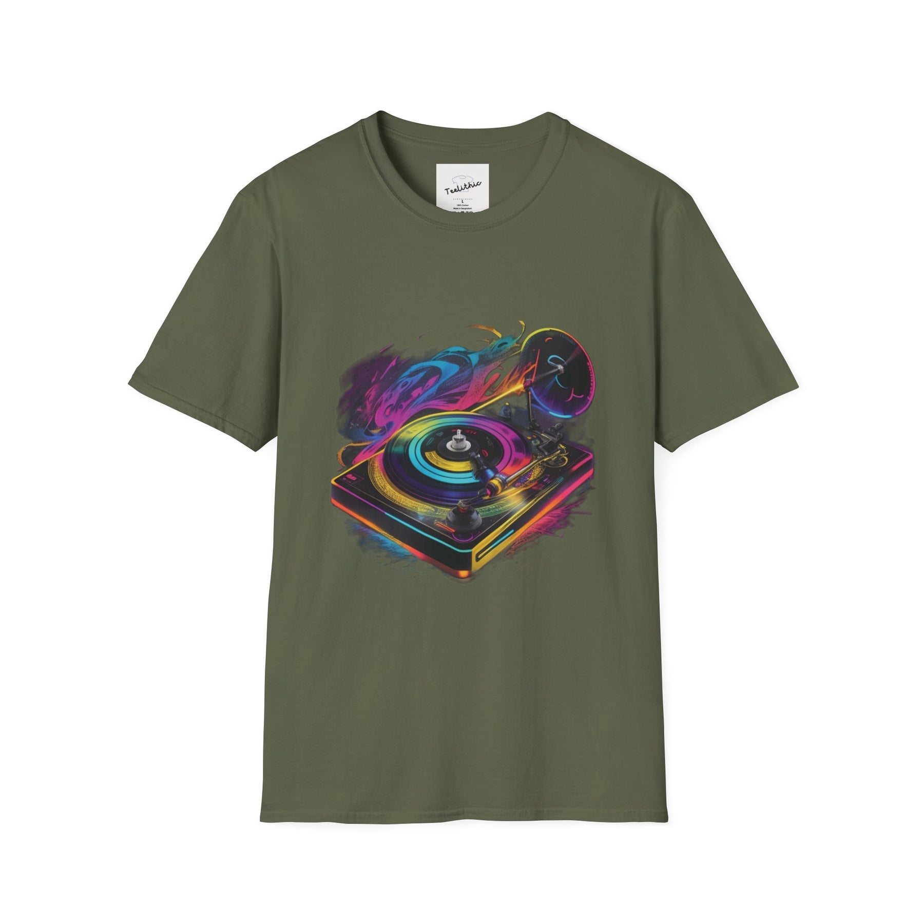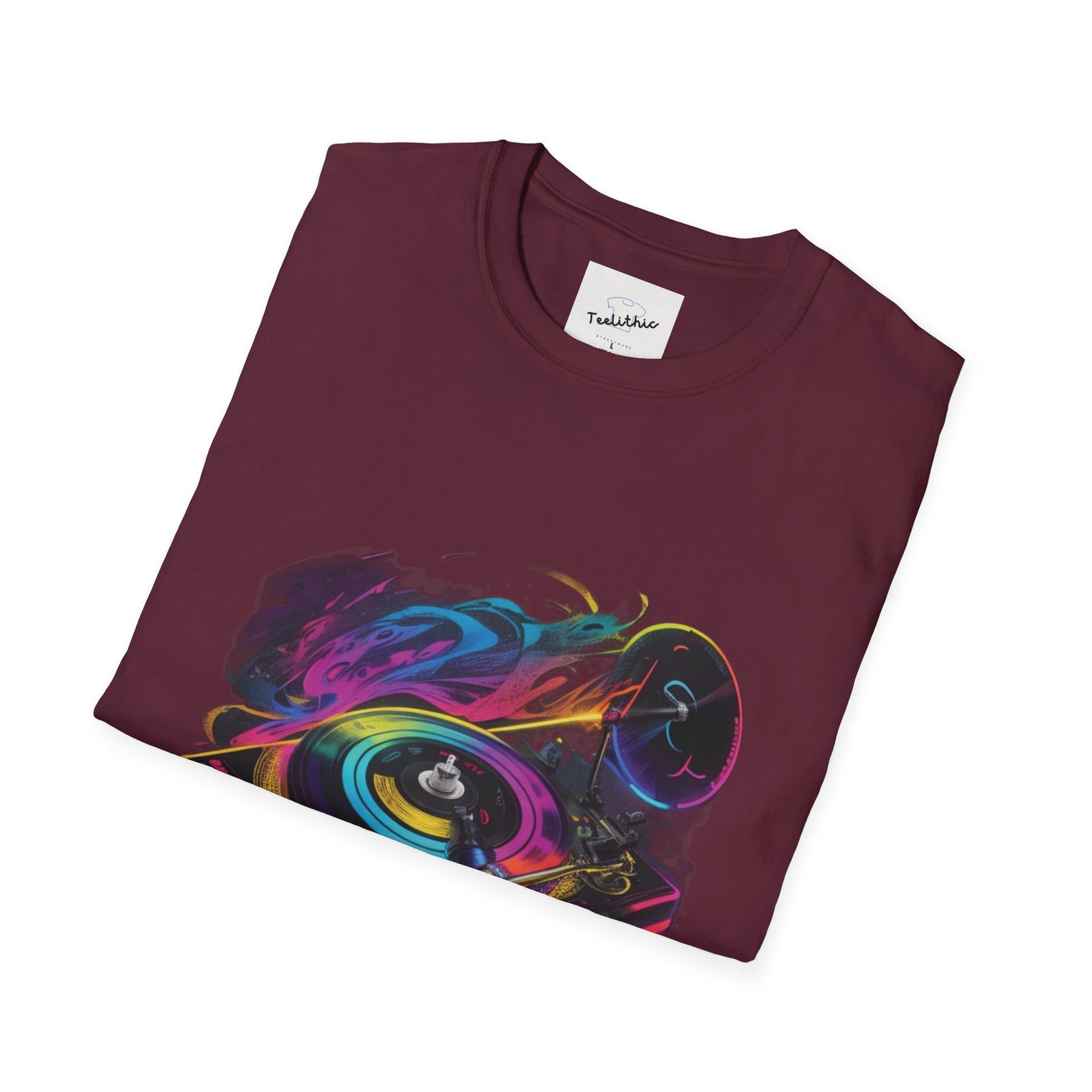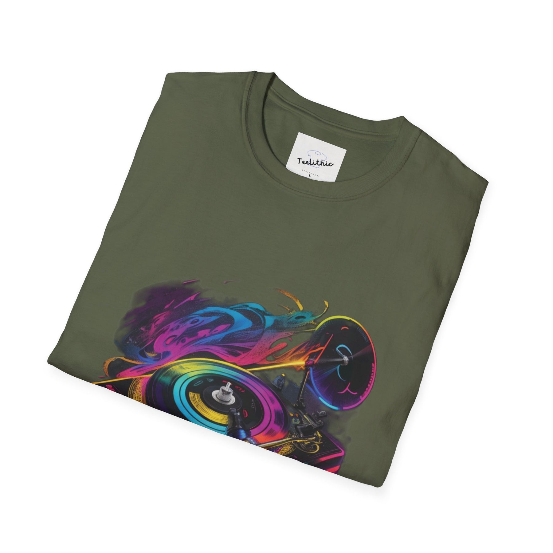 Neon Vinyl Turntable Tee | DJ Record Player T-Shirt