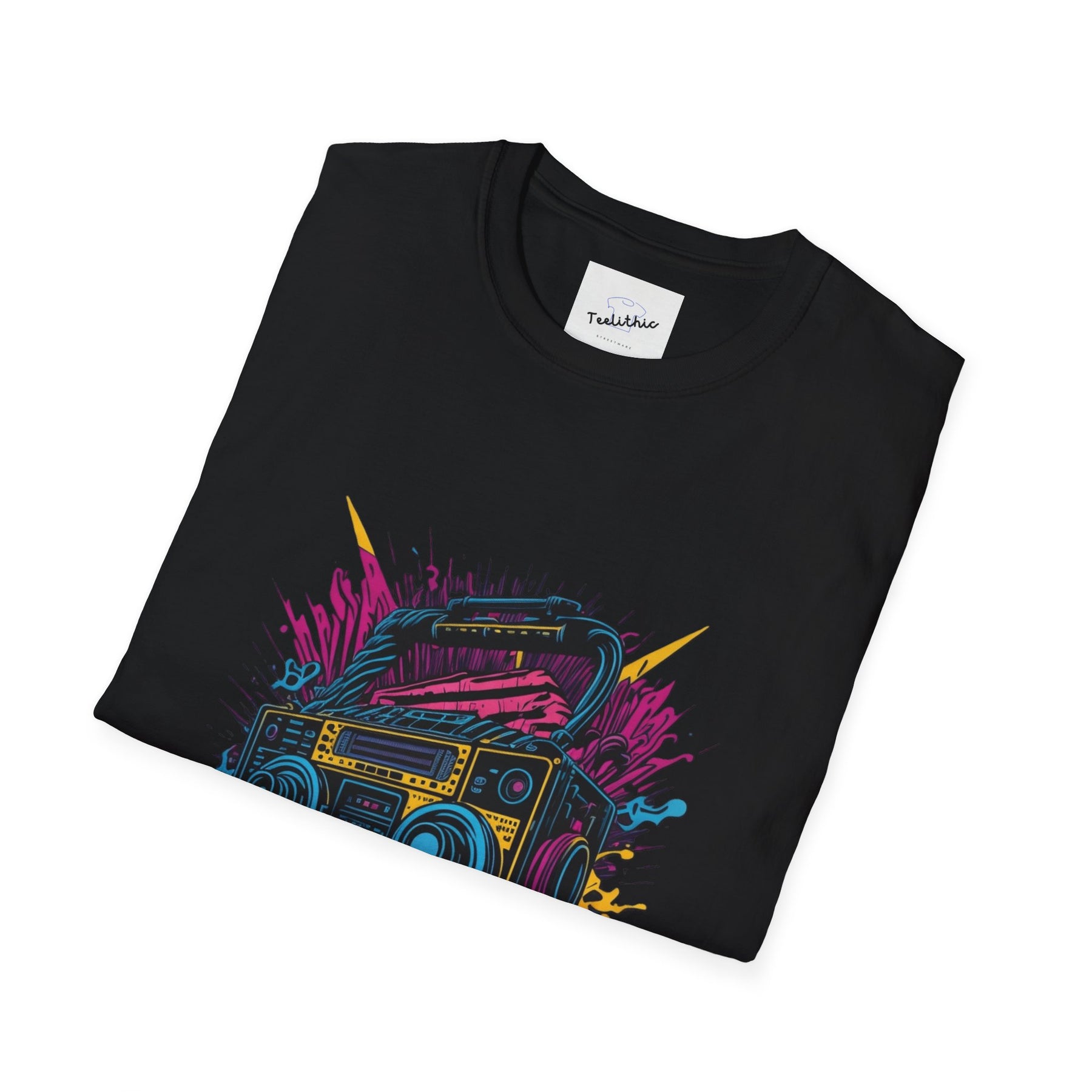 Retro Boombox T-Shirt — Vintage 80s Hip Hop Tape Player Tee