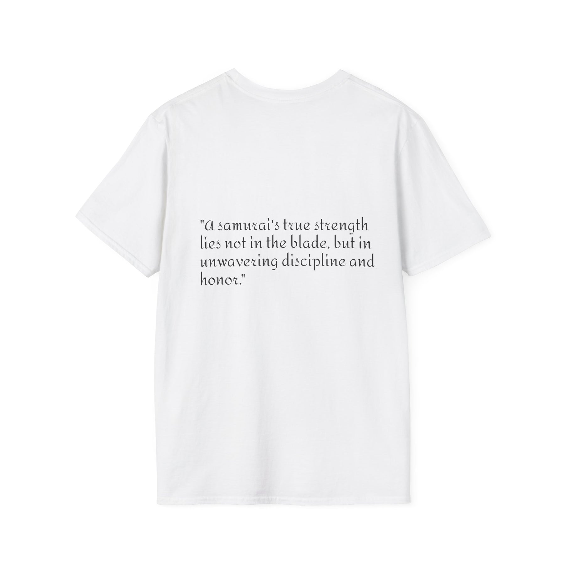 A quietly powerful tee that wears like a memory of dawn in the bamboo grove. The front shows a lone, armored samurai paused between light and shadow — helmet tied, blade at rest — while the back carries a thoughtful line about strength, discipline, and honor. It feels like a page from a traveler’s journal: calm, focused, and ready for whatever comes next. Wear it layered under a jacket for city nights or alone on humid afternoons; it settles comfortably against skin and moves with you, not against you. The muted print palette keeps the artwork contemplative rather than loud, so the shirt reads as intent and personal rather than flashy.