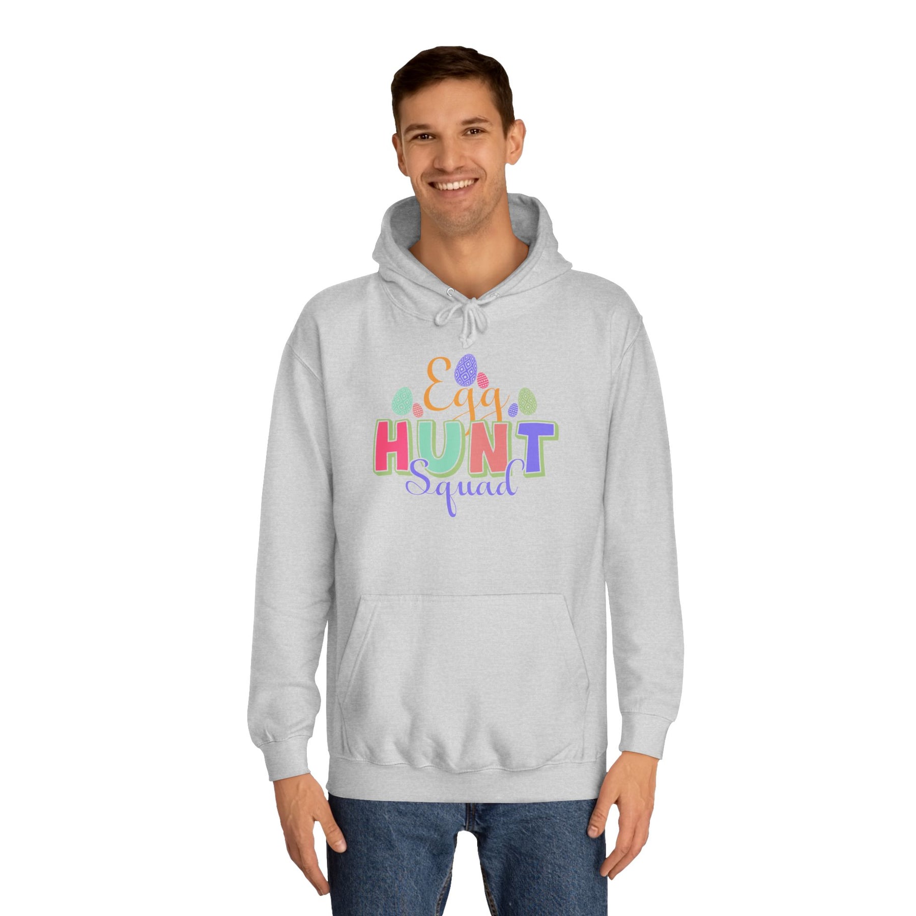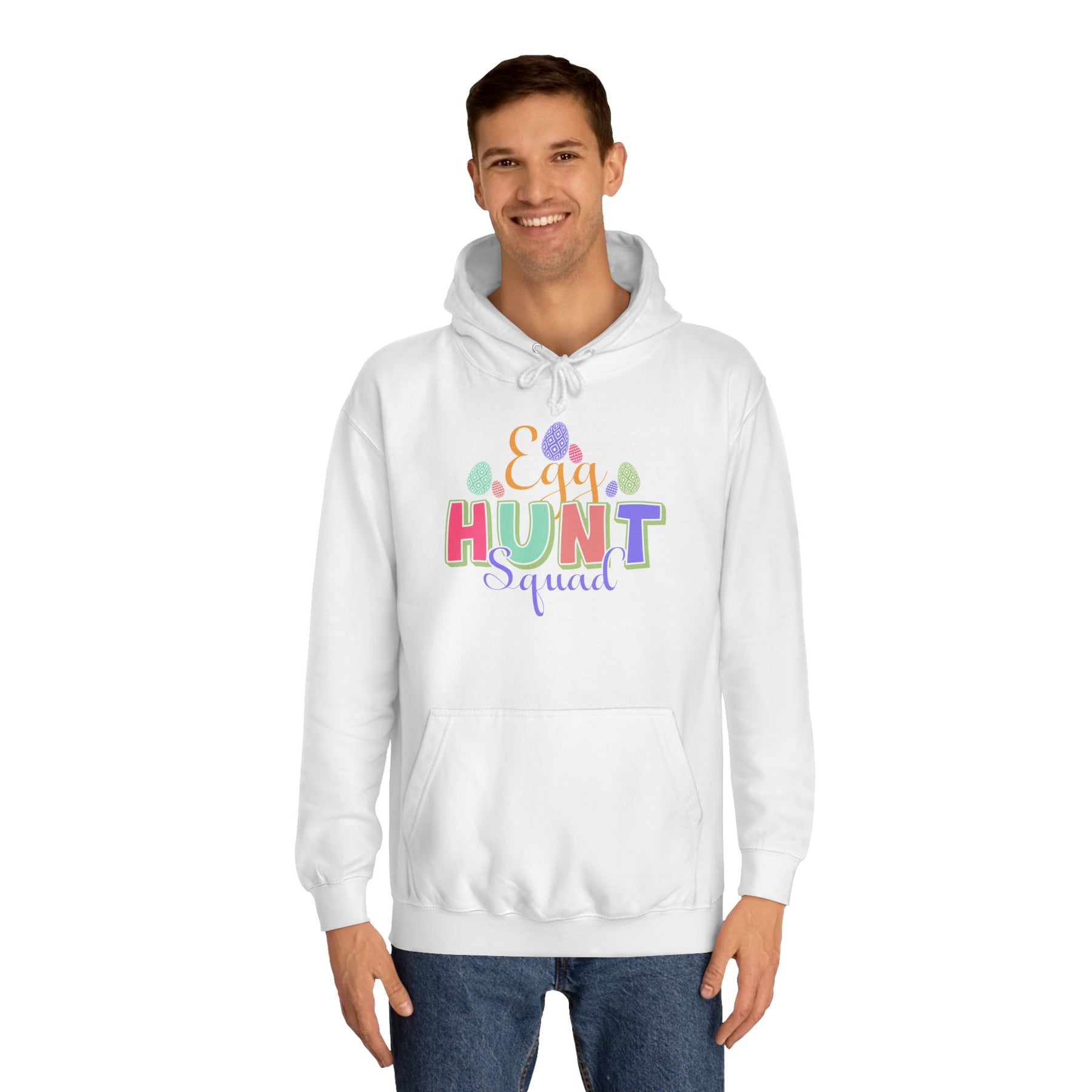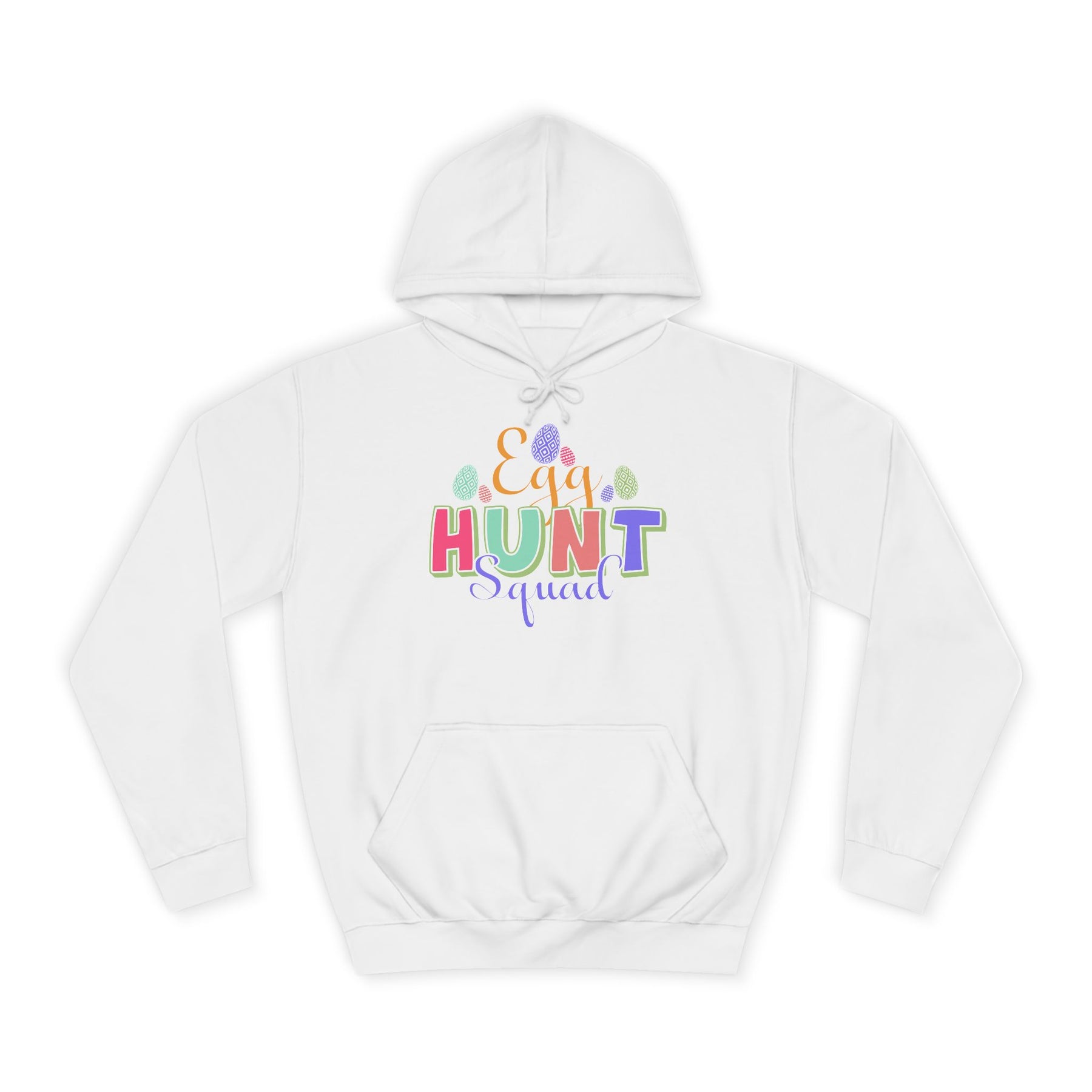 A cozy, loose-fit hoodie with a bright, playful design that brings Easter vibes to crisp mornings and community events. Lightweight-but-warm medium-heavy fabric drapes comfortably over jeans or joggers. The colorful “HUNT” lettering with scattered egg and confetti accents adds cheerful energy without overwhelming the clean white canvas. Practical details like a roomy kangaroo pocket and adjustable hood keep hands warm and shelter you from spring breezes. Ethically made and soft to the touch, this hoodie feels lived-in from the first wear — great for backyard egg hunts, school activities, or slow weekend coffee runs when you want something easy, cheerful, and familiar.