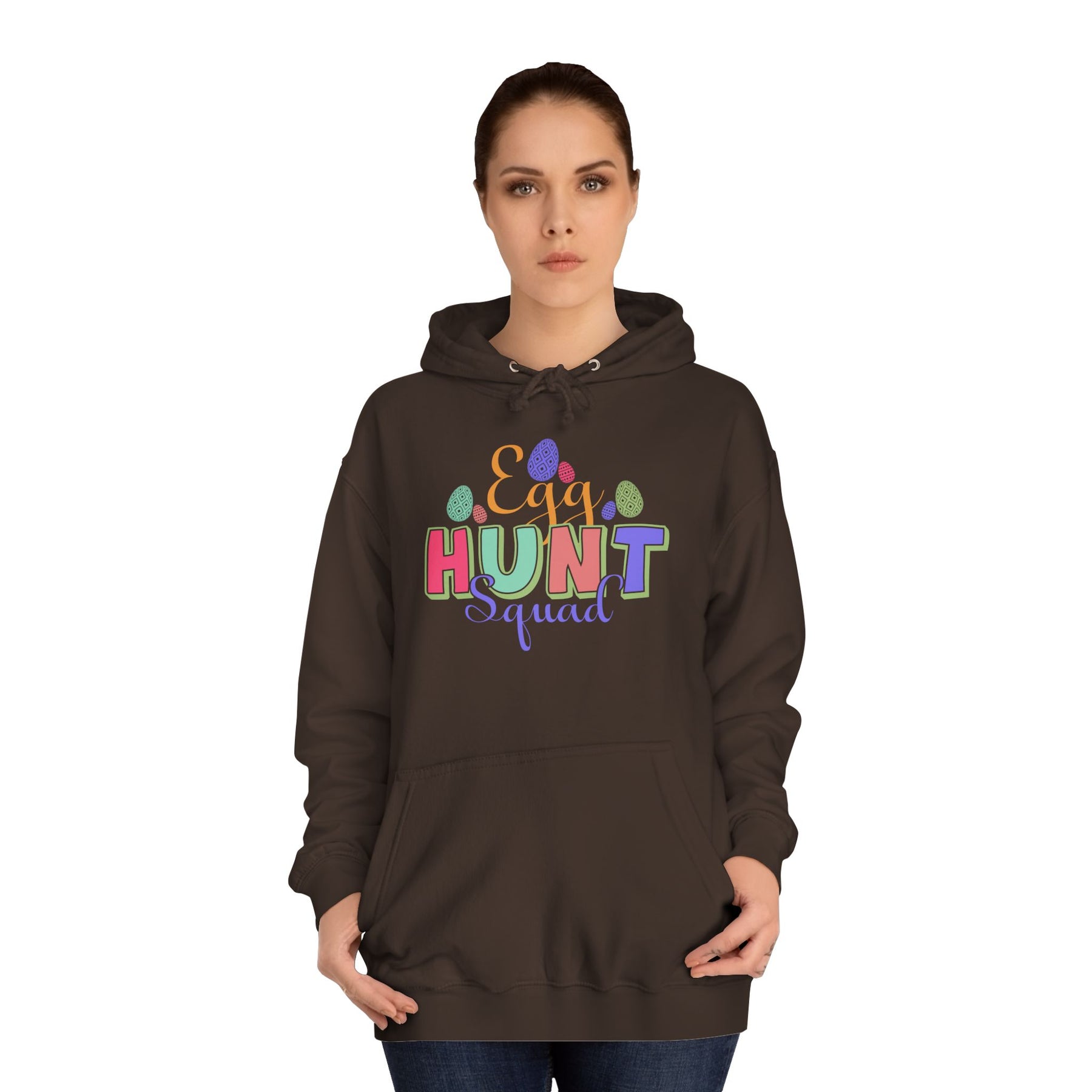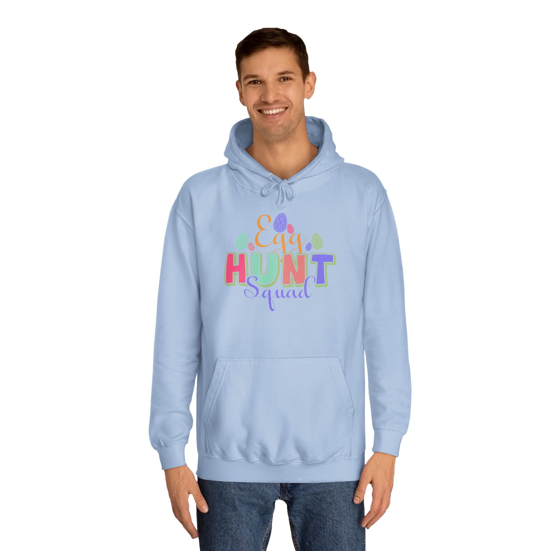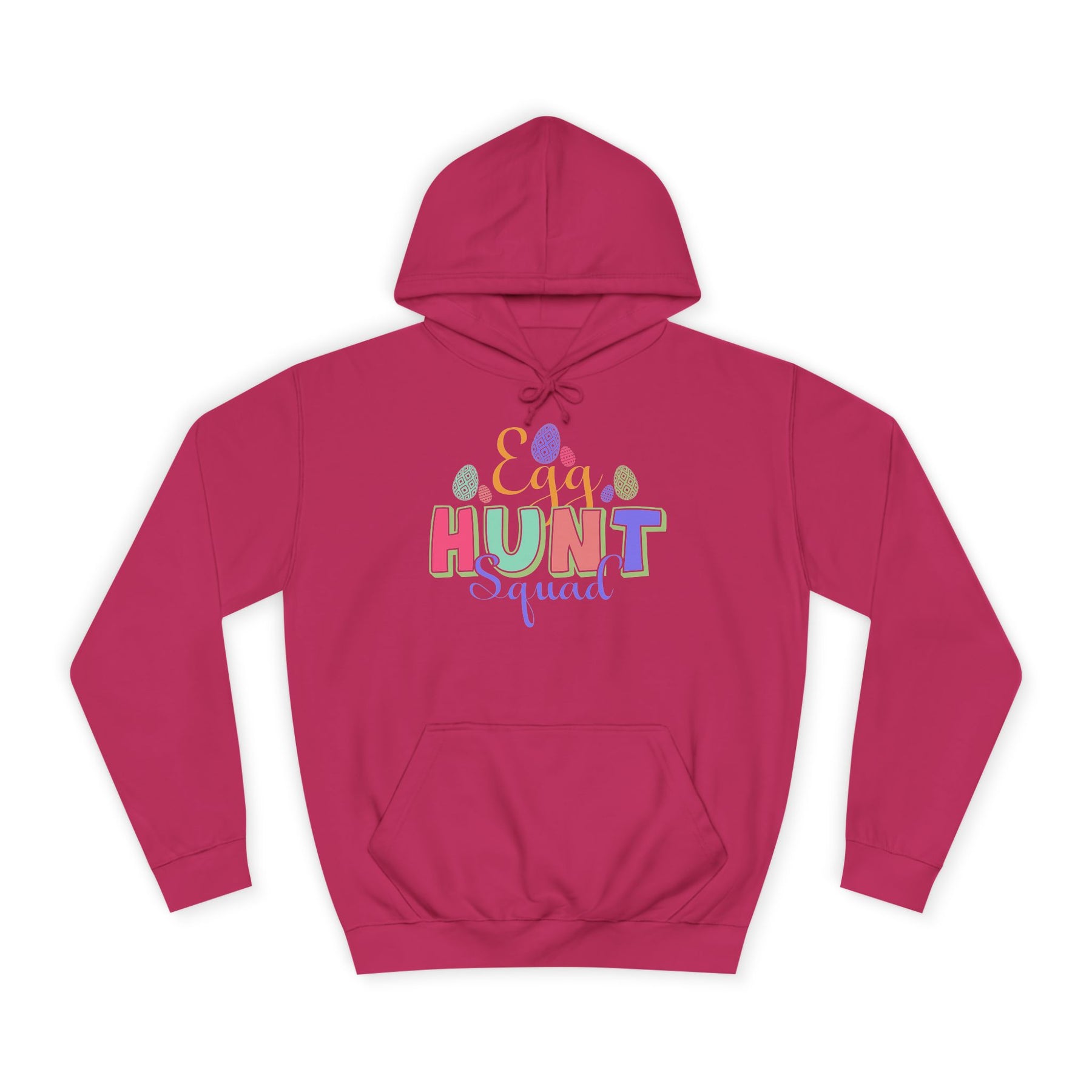 A cozy, loose-fit hoodie with a bright, playful design that brings Easter vibes to crisp mornings and community events. Lightweight-but-warm medium-heavy fabric drapes comfortably over jeans or joggers. The colorful “HUNT” lettering with scattered egg and confetti accents adds cheerful energy without overwhelming the clean white canvas. Practical details like a roomy kangaroo pocket and adjustable hood keep hands warm and shelter you from spring breezes. Ethically made and soft to the touch, this hoodie feels lived-in from the first wear — great for backyard egg hunts, school activities, or slow weekend coffee runs when you want something easy, cheerful, and familiar.