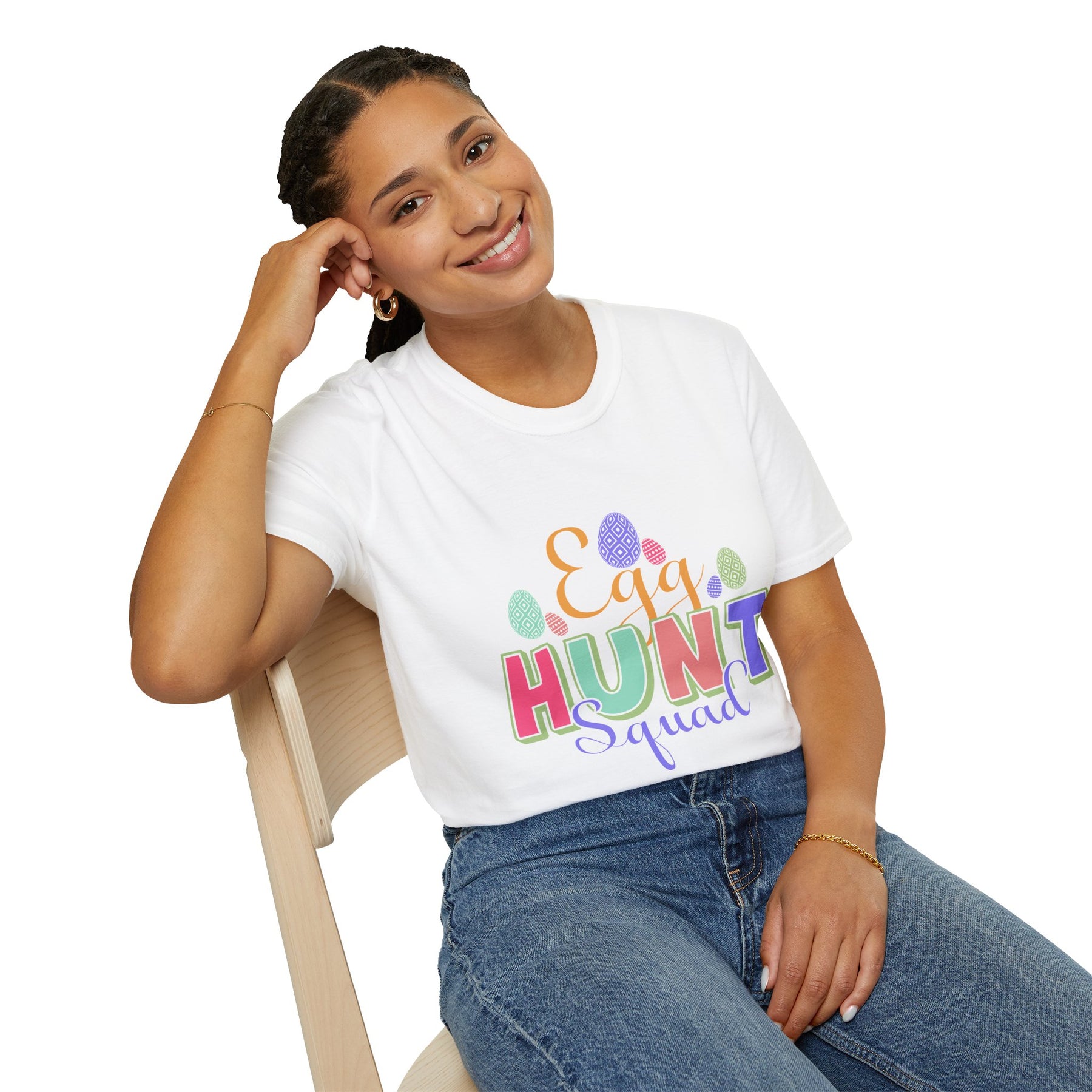 Bright, playful, and made for spring mornings spent hunting for pastel treasures. This lightweight cotton tee carries a cheerful “Egg Hunt Squad” design in soft, candy-colored letters and speckled eggs. It feels smooth against the skin and drapes cleanly thanks to its classic crew neck and classic fit — easy to layer under a jacket or wear on its own while chasing little ones across dewy lawns. Ethically sourced ring-spun cotton and tear-away labeling keep comfort and conscience aligned, while durable printing holds up through washes and holiday repeats. Wear it to bring a little extra joy to family gatherings, community egg hunts, and backyard brunches.