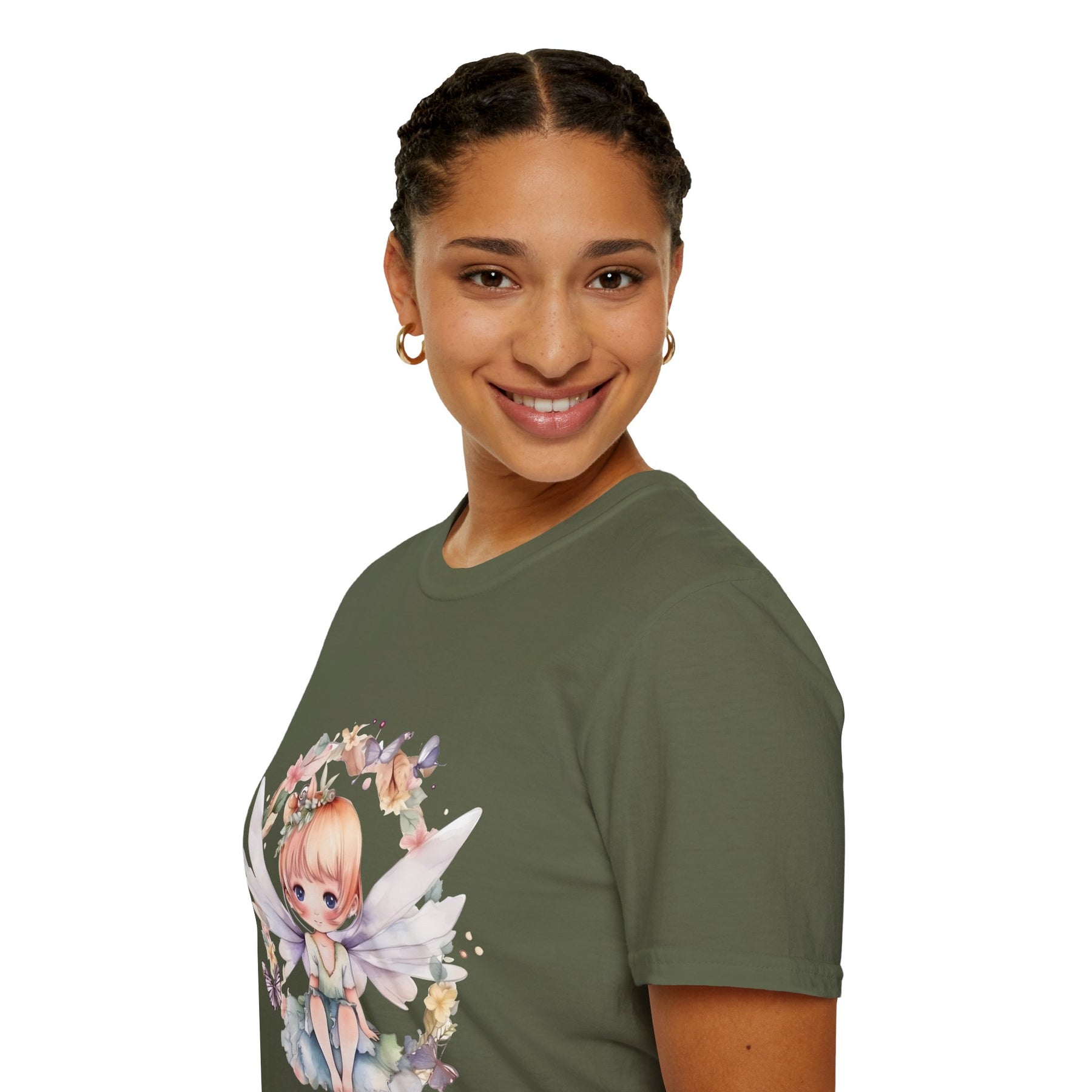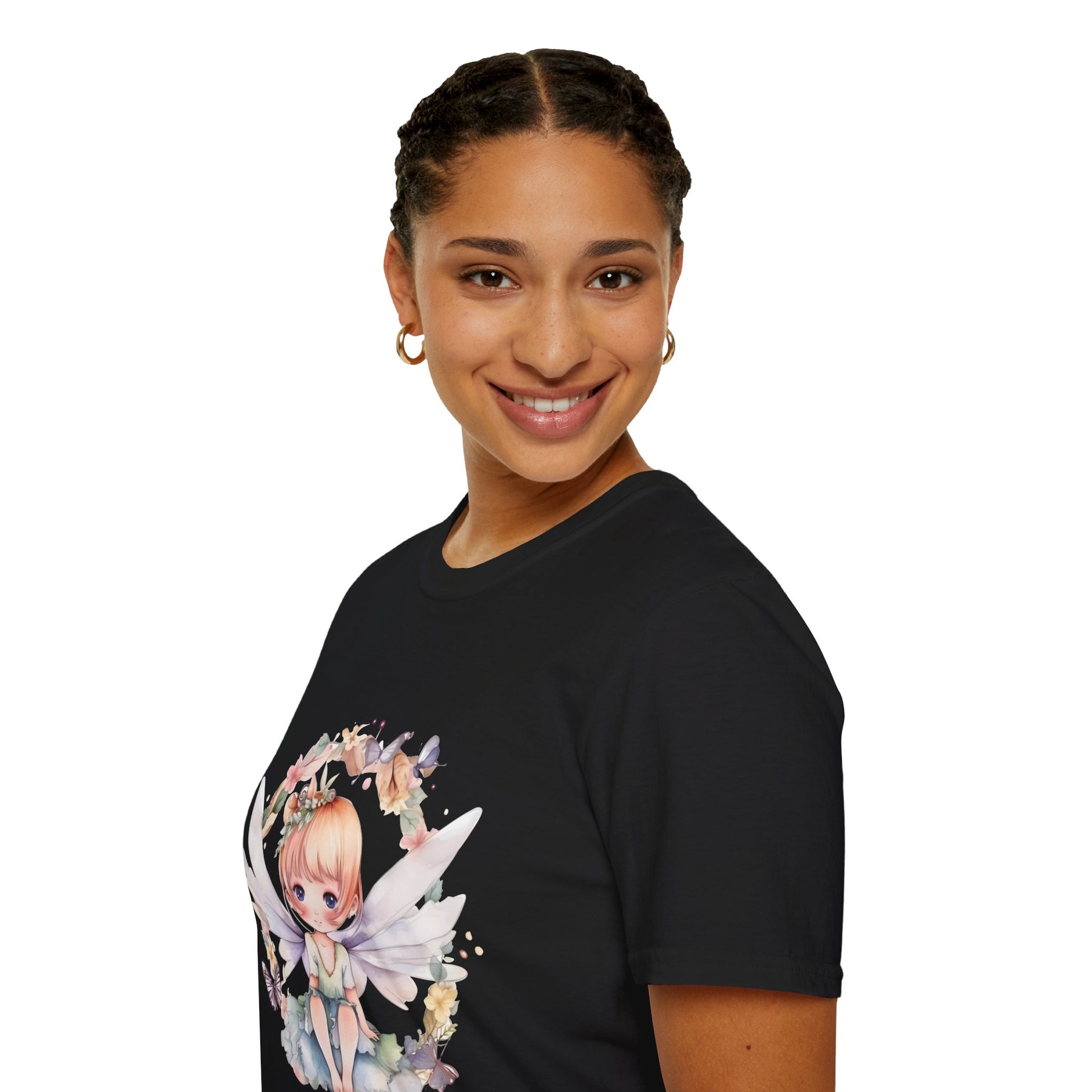 Light as a whisper and softly detailed, this cotton tee brings a gentle, storybook charm to everyday wear. A hand-illustrated fairy sits at its heart, surrounded by watercolor blooms and drifting butterflies — a quiet scene that invites daydreams and slow smiles. The lightweight 100% ring-spun cotton feels smooth against the skin and keeps the printed colors delicate and true. Wear it to wander through farmer’s markets, low-key meetups with fellow art lovers, or cozy afternoons curled up reading illustrated tales. It’s made to blend with layered wardrobes and to carry a little magic into ordinary routines.