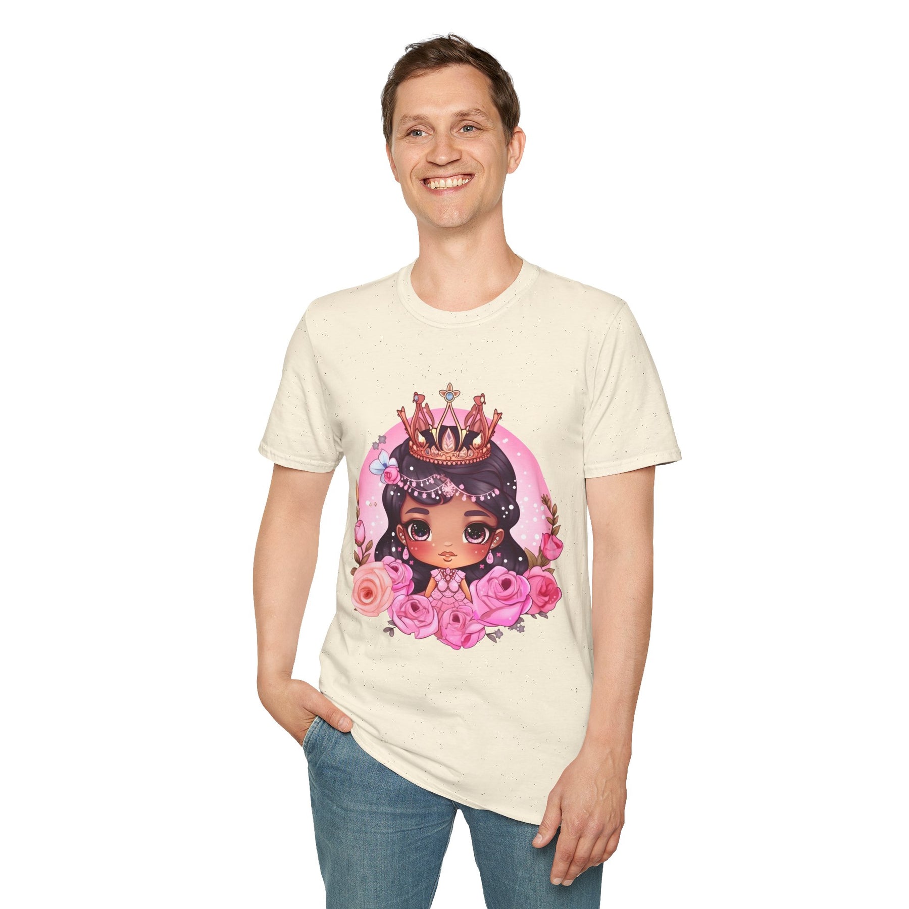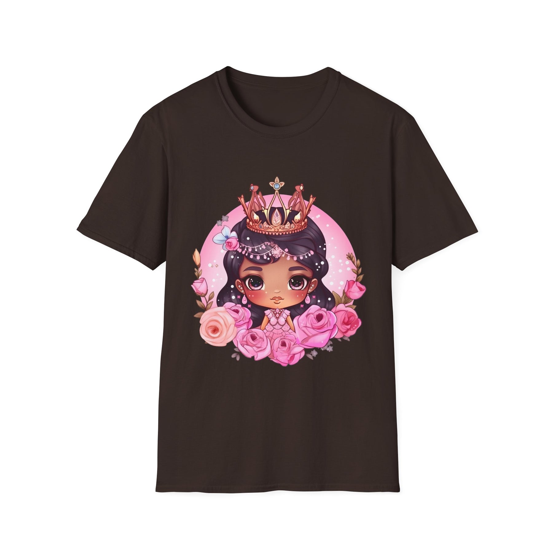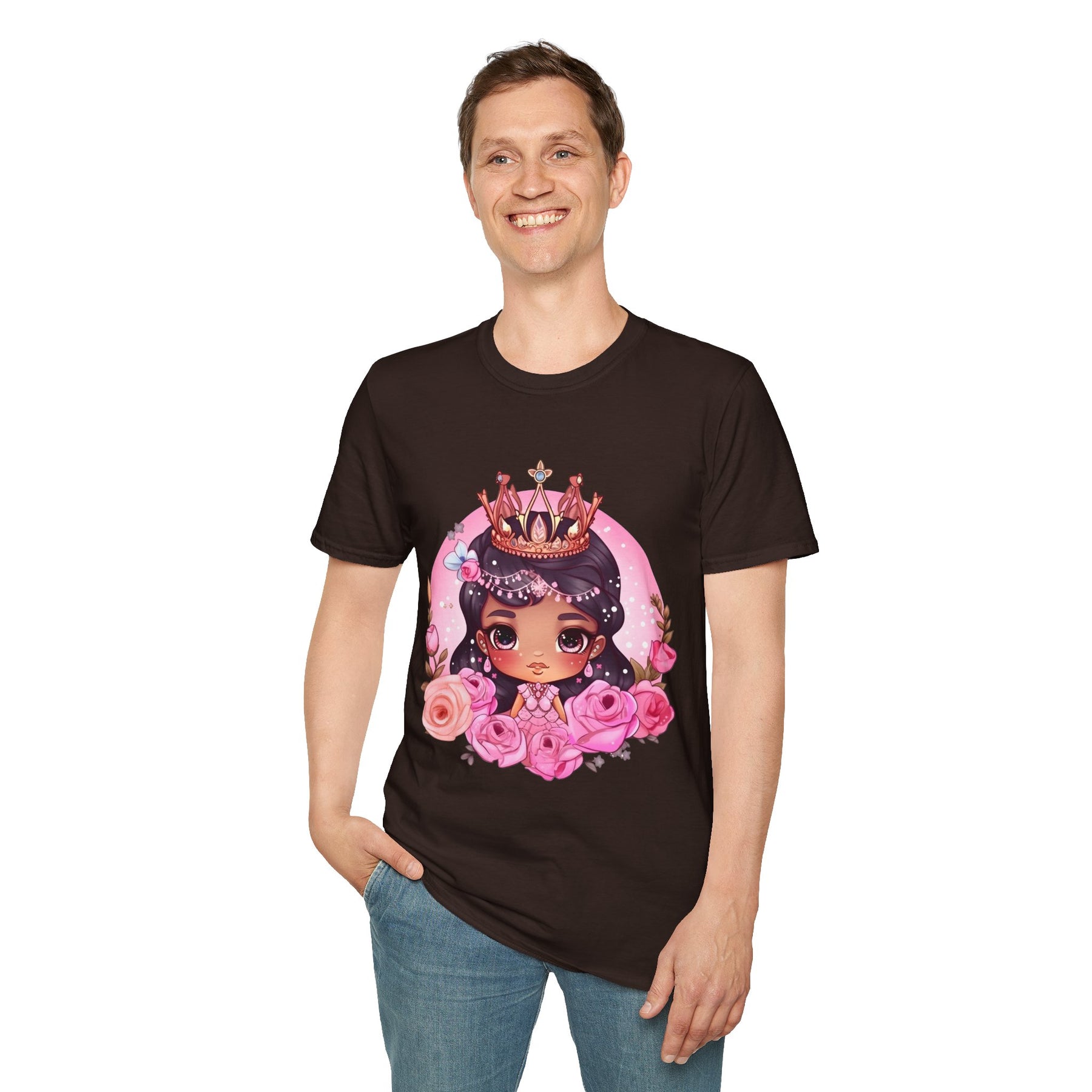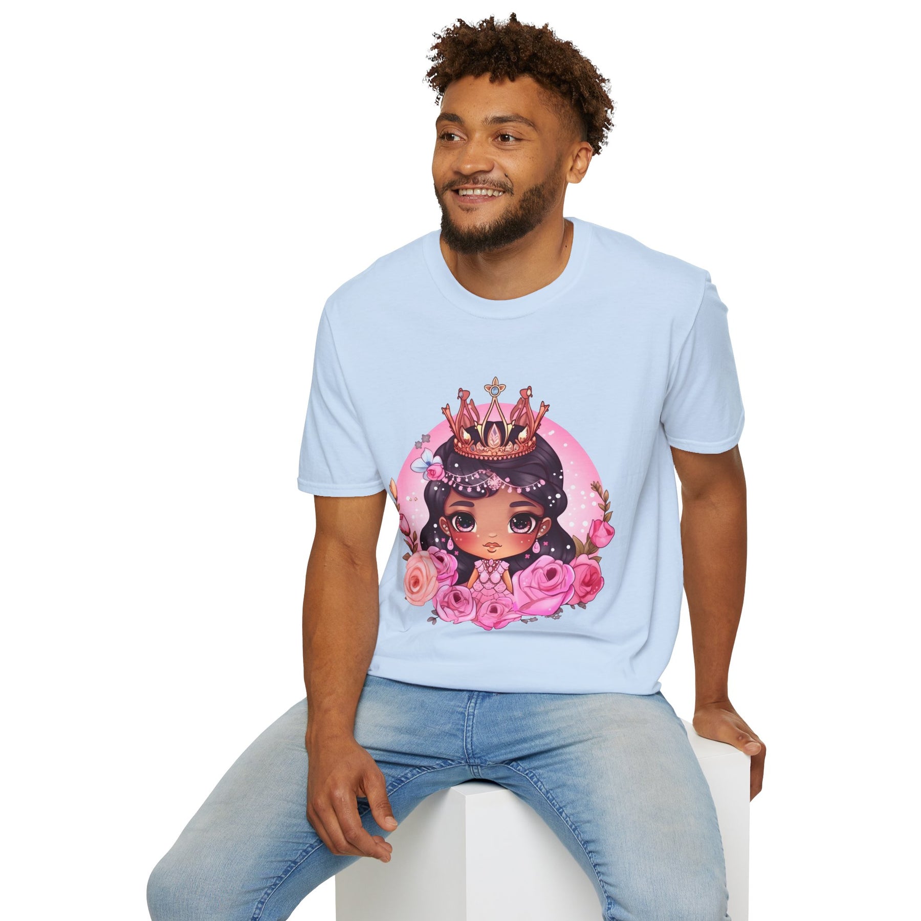 This lightweight cotton tee carries a sweet, whimsical illustration of a little princess framed by roses — soft, feminine, and quietly bold. It wears like a favorite: breathable ring-spun cotton with a clean crew neckline and classic fit that layers easily or stands on its own. The print’s delicate colors and tiny crown details invite gentle compliments and everyday smiles, while durability and quality stitching mean this shirt keeps its shape and keeps being loved. Wear it to bring a touch of storybook charm to casual days, cozy meetups, or relaxed family moments.