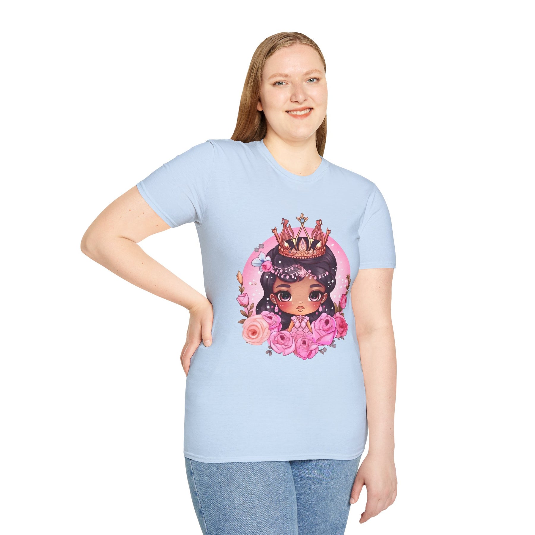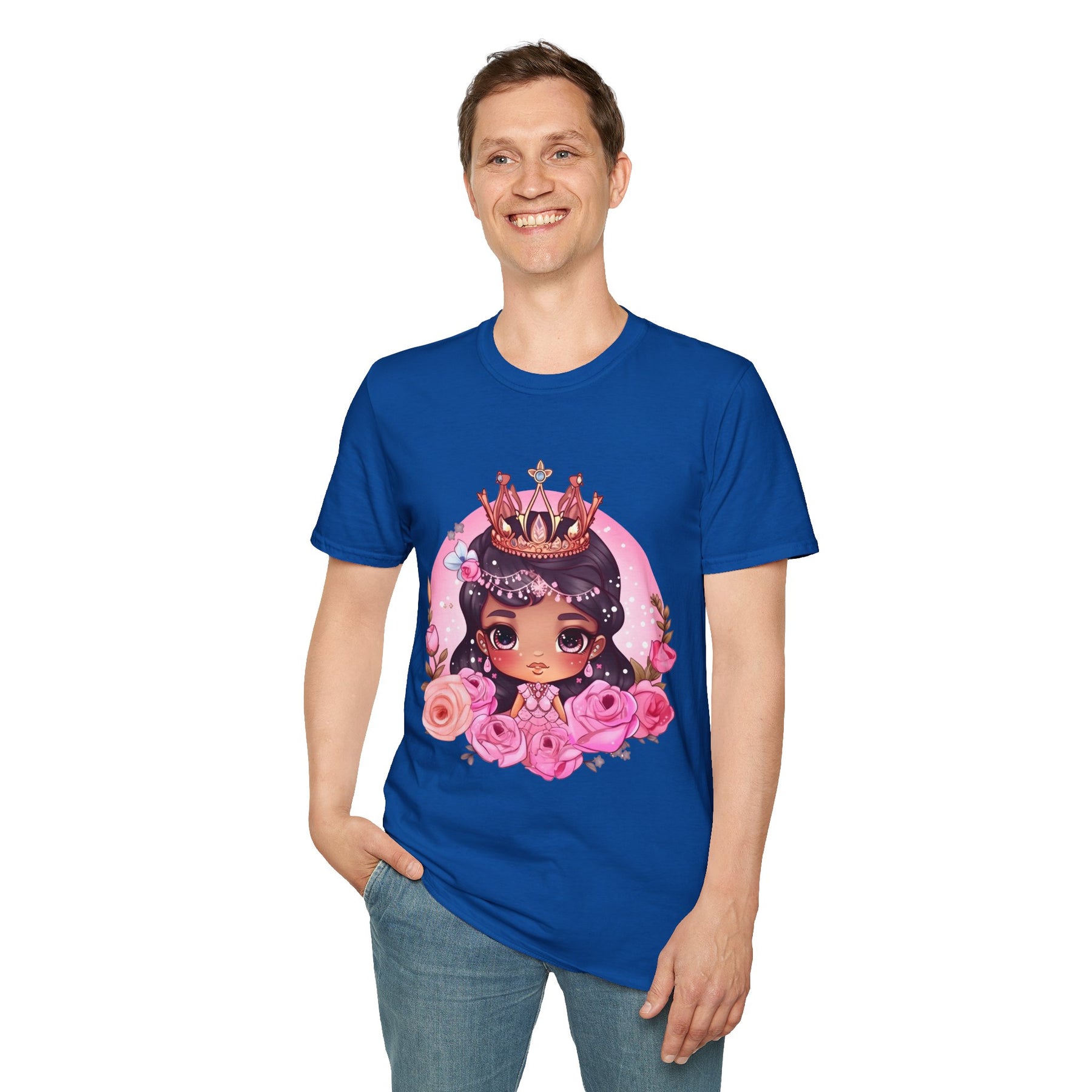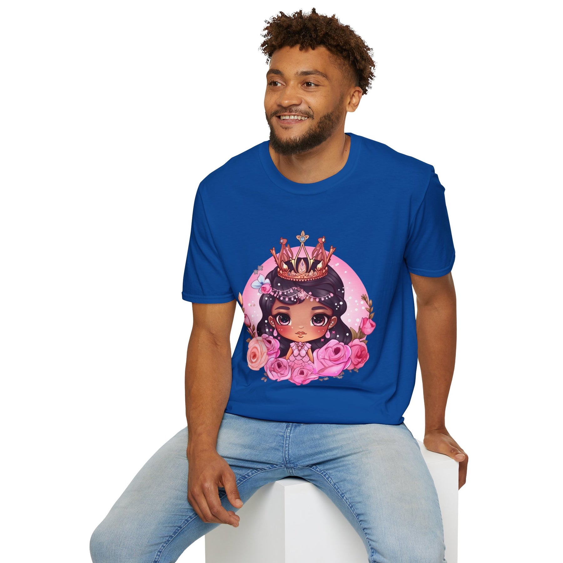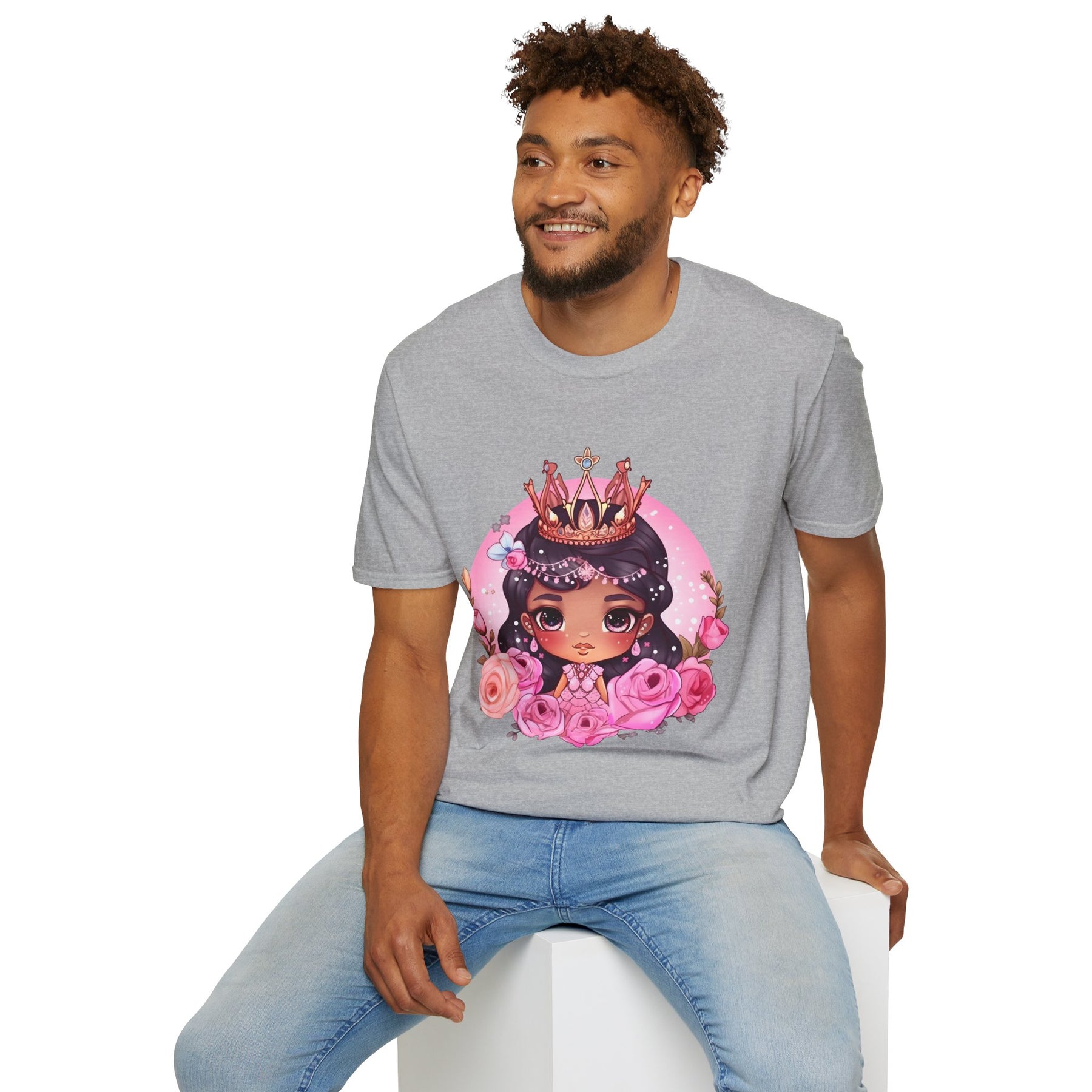 This lightweight cotton tee carries a sweet, whimsical illustration of a little princess framed by roses — soft, feminine, and quietly bold. It wears like a favorite: breathable ring-spun cotton with a clean crew neckline and classic fit that layers easily or stands on its own. The print’s delicate colors and tiny crown details invite gentle compliments and everyday smiles, while durability and quality stitching mean this shirt keeps its shape and keeps being loved. Wear it to bring a touch of storybook charm to casual days, cozy meetups, or relaxed family moments.