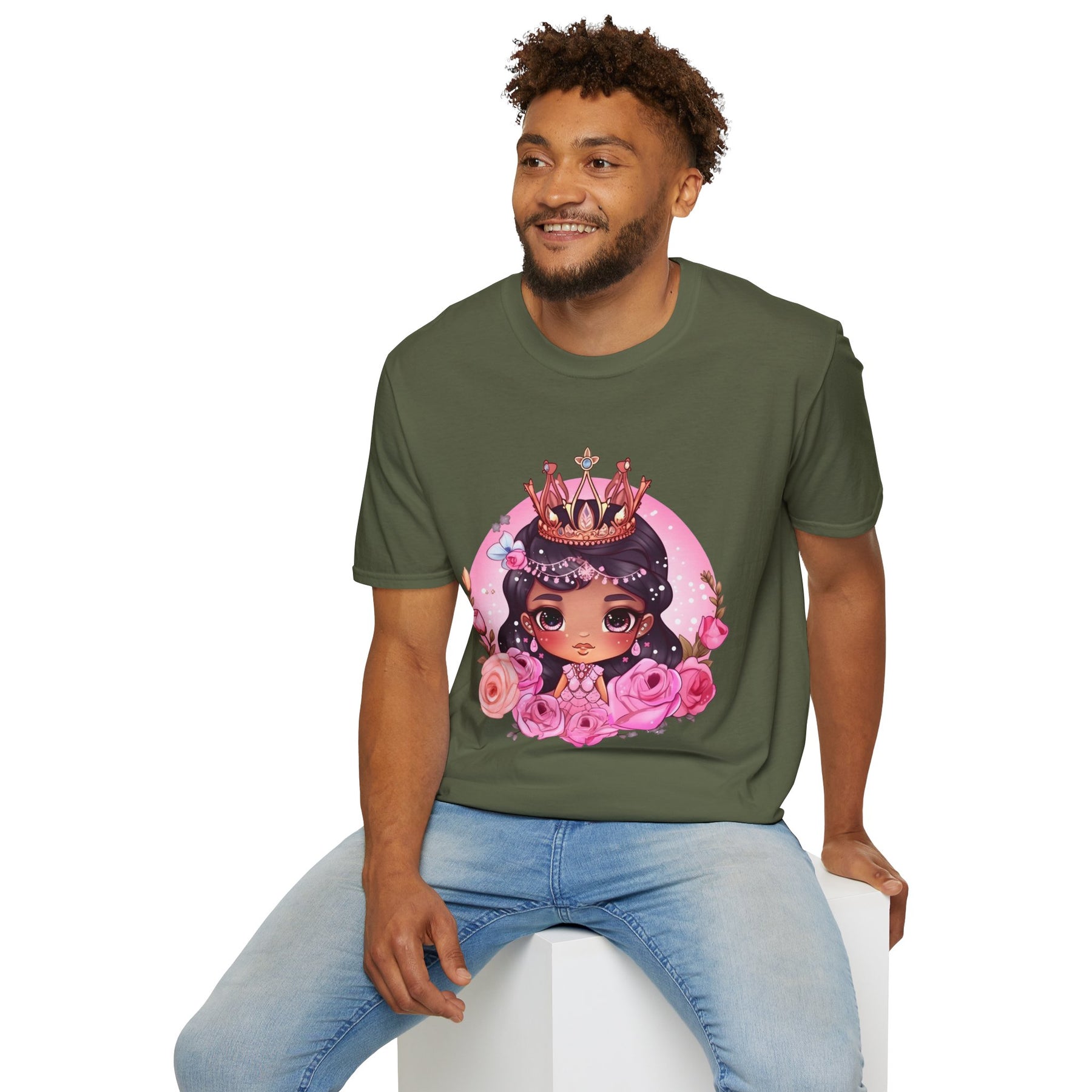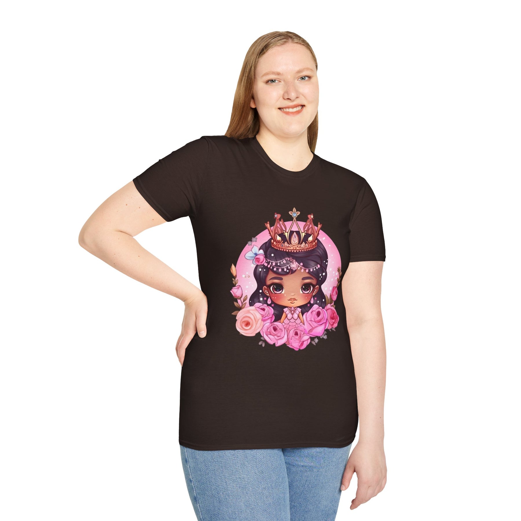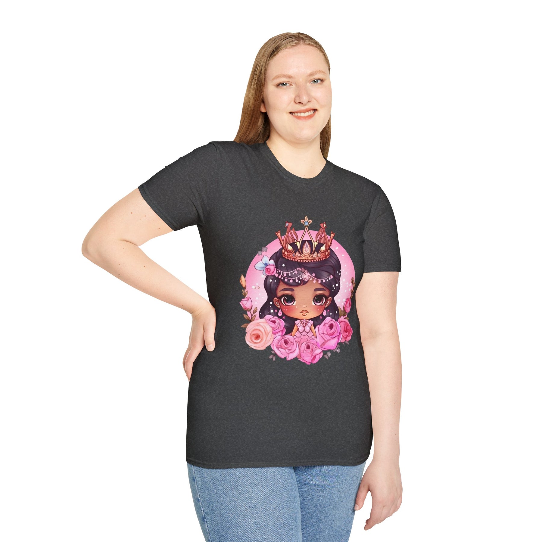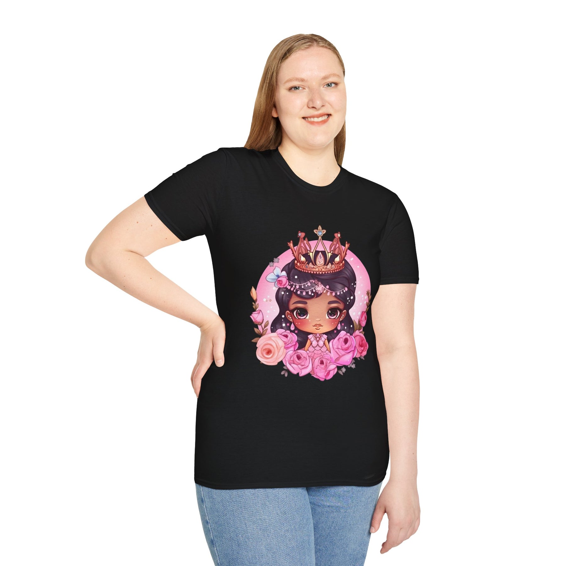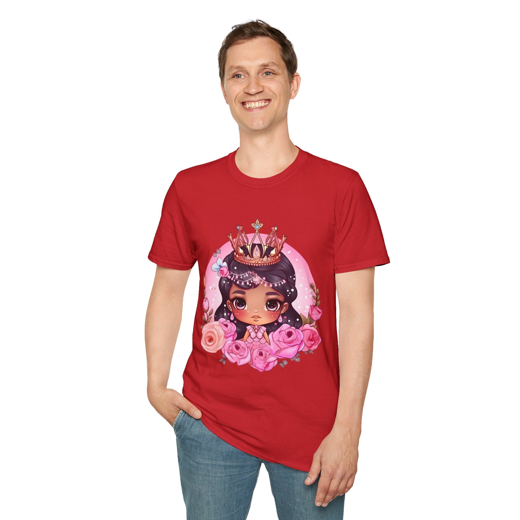 This lightweight cotton tee carries a sweet, whimsical illustration of a little princess framed by roses — soft, feminine, and quietly bold. It wears like a favorite: breathable ring-spun cotton with a clean crew neckline and classic fit that layers easily or stands on its own. The print’s delicate colors and tiny crown details invite gentle compliments and everyday smiles, while durability and quality stitching mean this shirt keeps its shape and keeps being loved. Wear it to bring a touch of storybook charm to casual days, cozy meetups, or relaxed family moments.