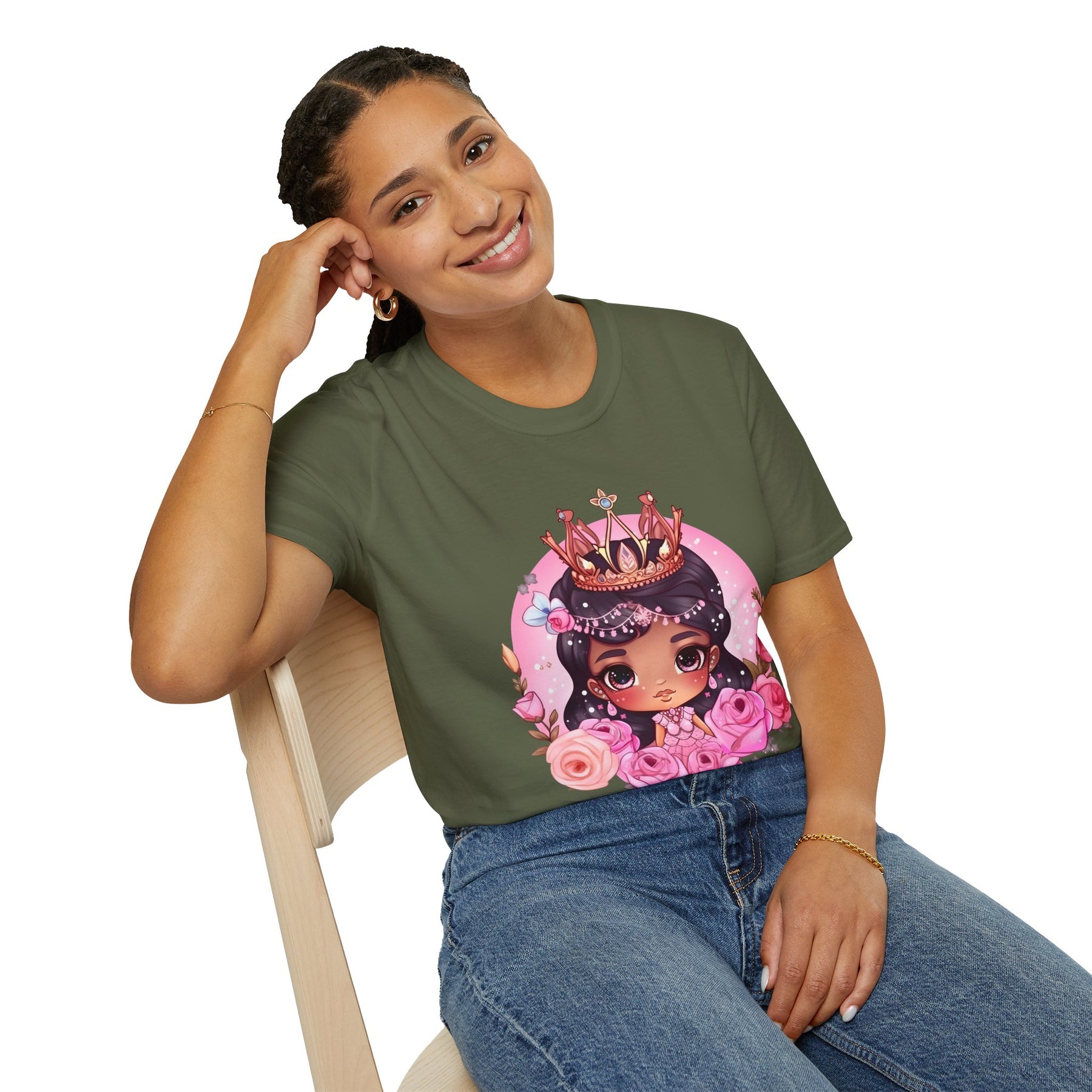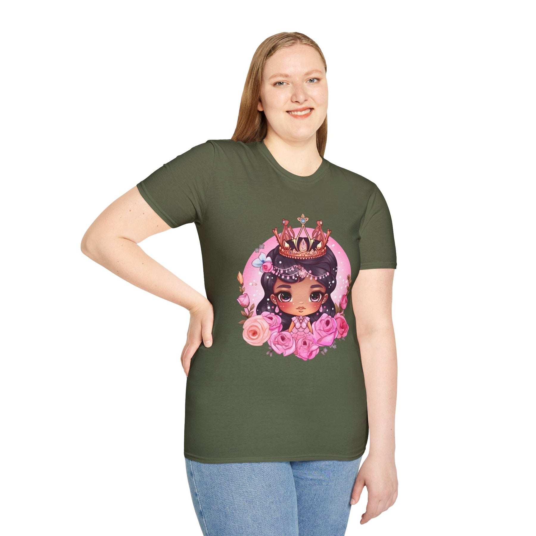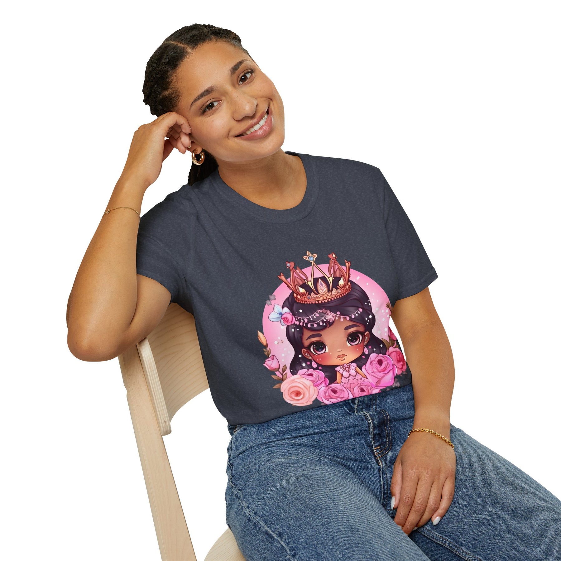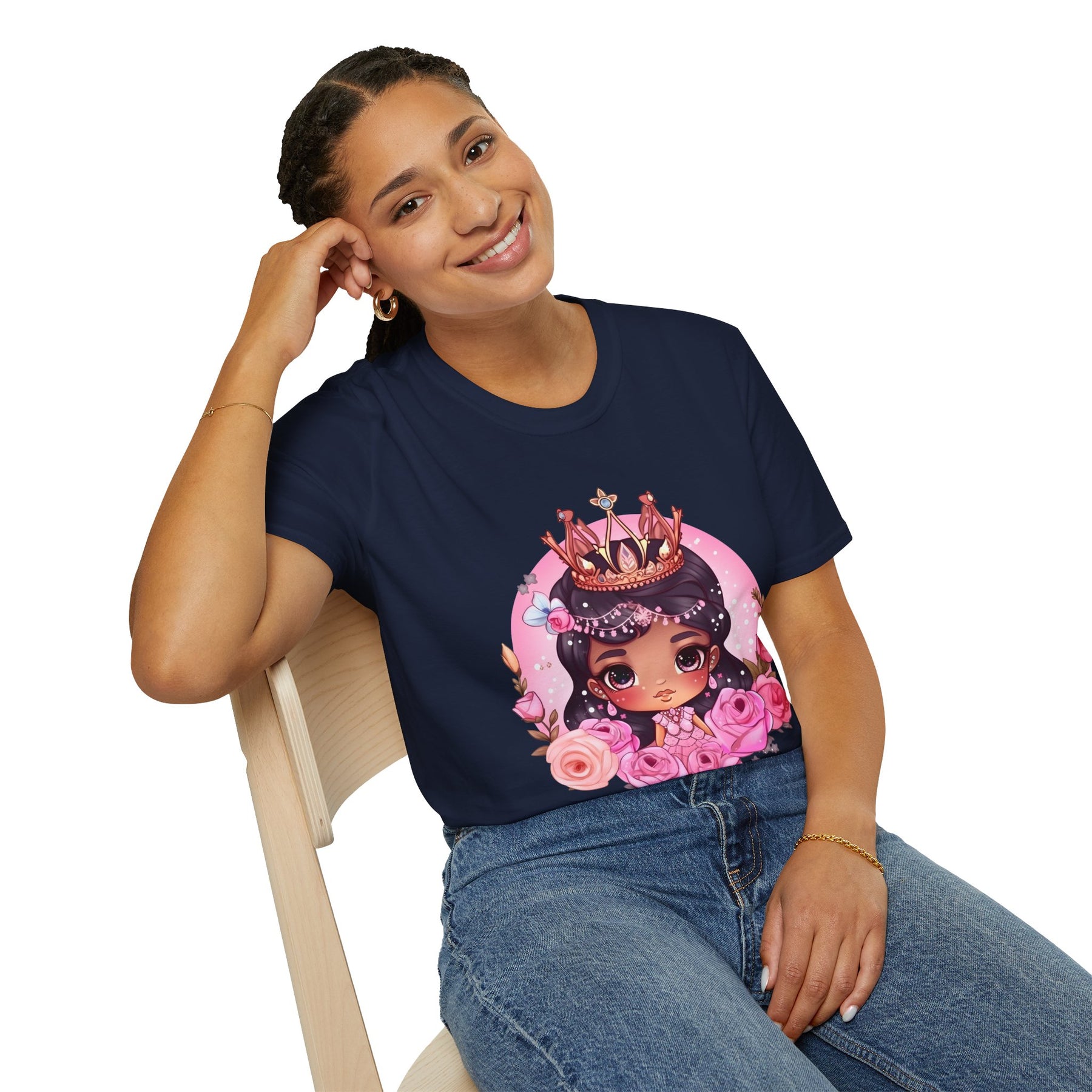 This lightweight cotton tee carries a sweet, whimsical illustration of a little princess framed by roses — soft, feminine, and quietly bold. It wears like a favorite: breathable ring-spun cotton with a clean crew neckline and classic fit that layers easily or stands on its own. The print’s delicate colors and tiny crown details invite gentle compliments and everyday smiles, while durability and quality stitching mean this shirt keeps its shape and keeps being loved. Wear it to bring a touch of storybook charm to casual days, cozy meetups, or relaxed family moments.